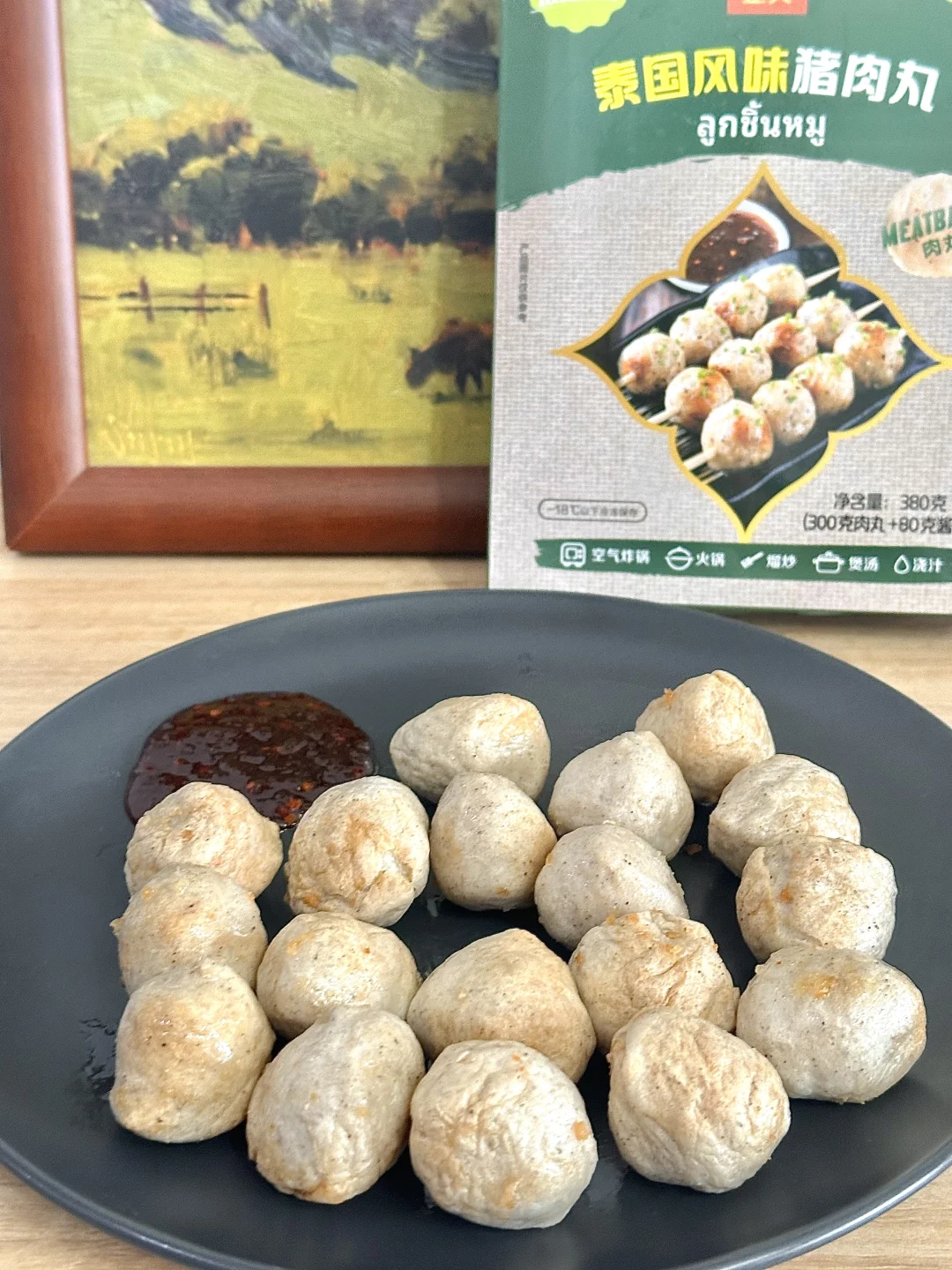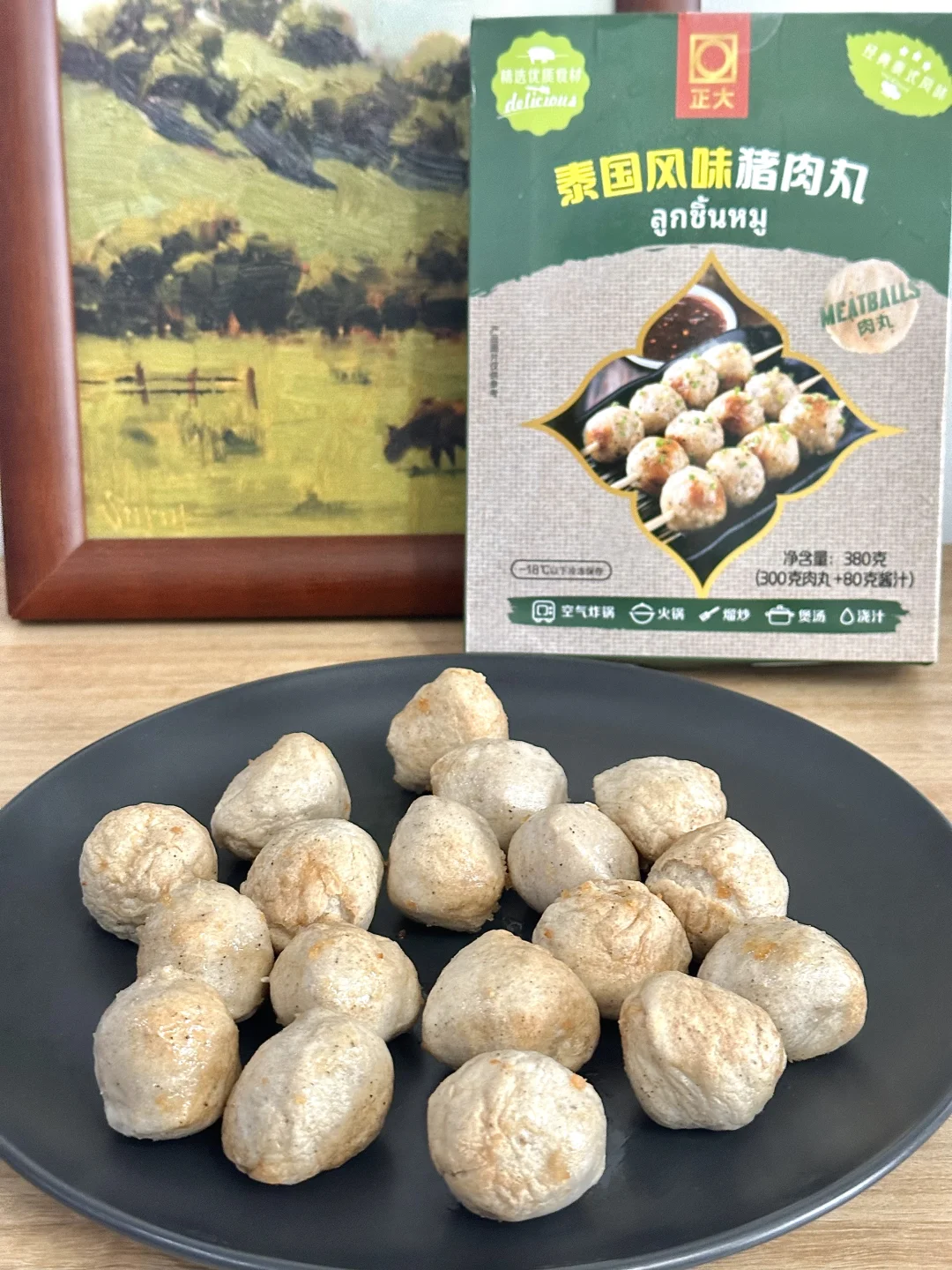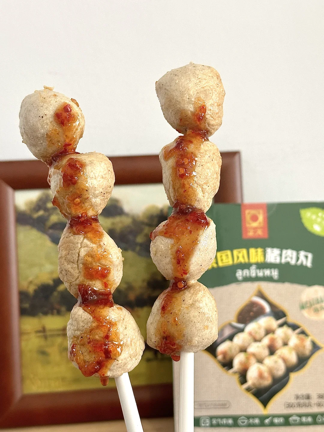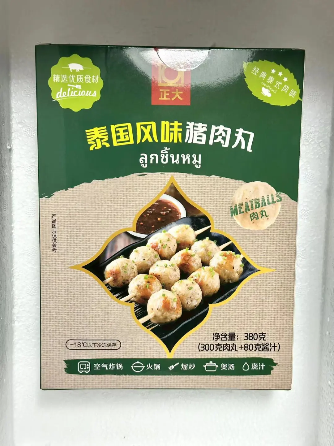 家人们咱就是说,经常喜欢去各种便利店买烤猪肉丸🍡但是这个天气又热,路程又长,有时候又很贵!每次感觉都去当了个大冤种 还好,我姐给我推荐了一款正大他们家的泰国风味猪肉丸🍡 尊滴就是说神还原↪️跟店里买的没什么区别,而且丸子更加的紧致,很Q弹在搭配着自由的酱汁很完美的呀,很美味!! 空气炸锅170度烤个8到10分钟就可以出锅了!想吃的更过瘾一些可以穿成一串把酱都淋上!绝了,就是说,爱吃猪肉丸的闭眼入