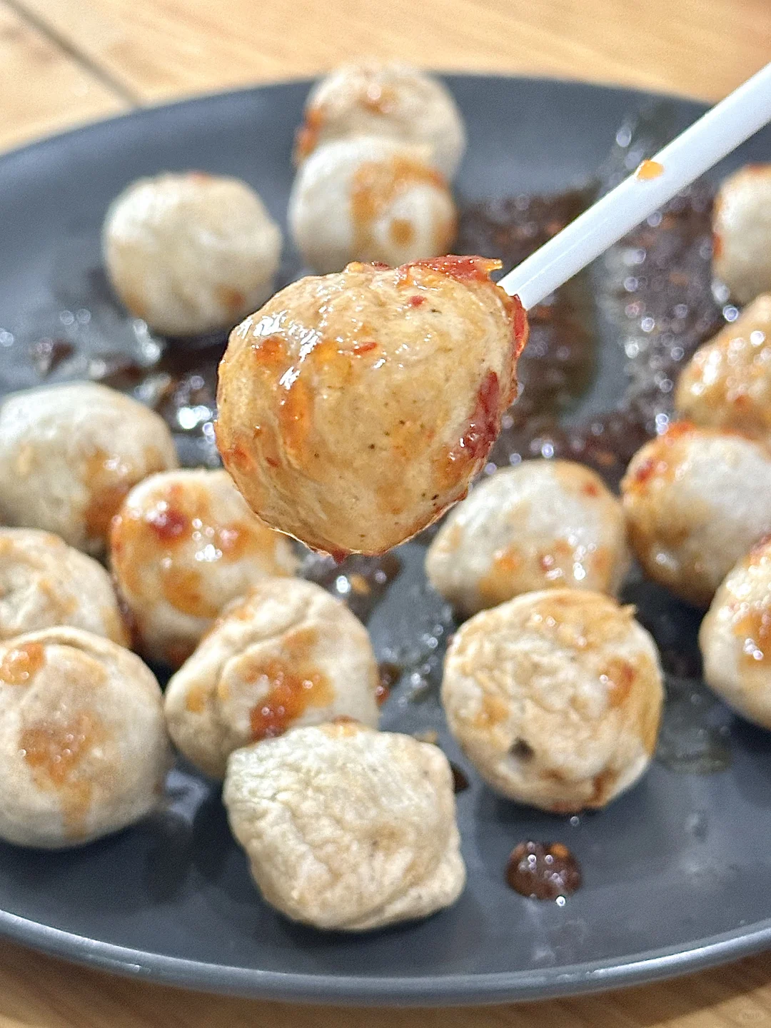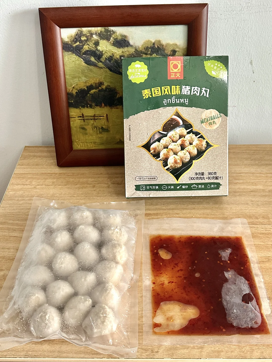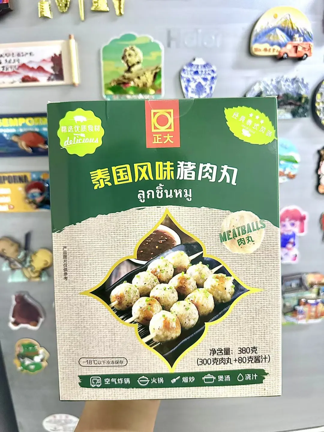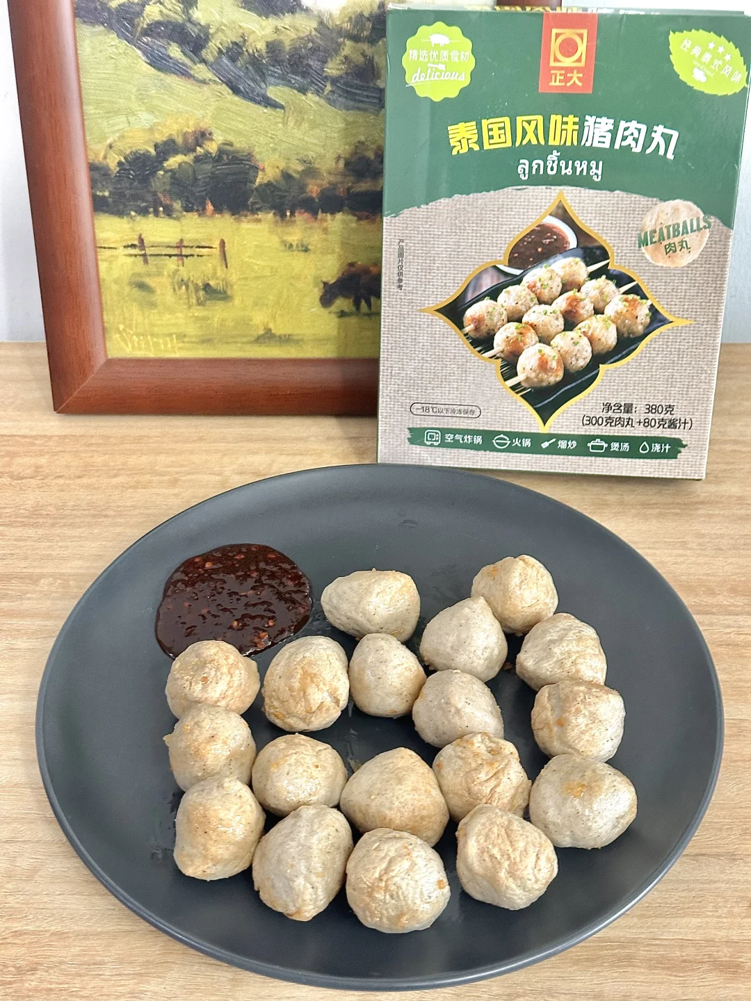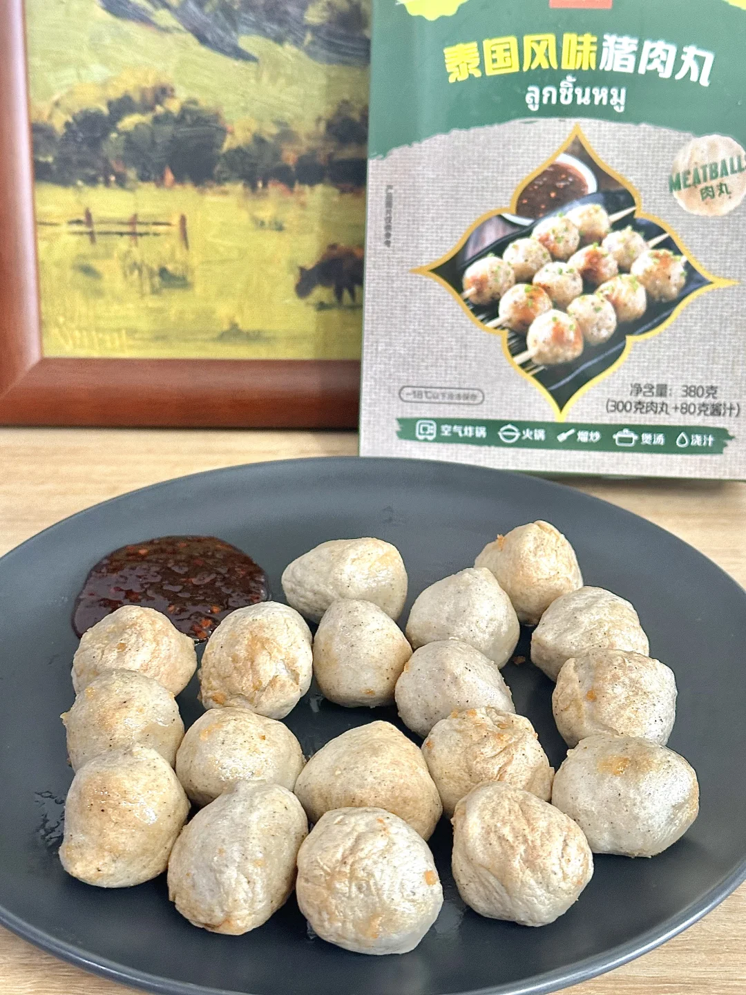 家人们咱就是说,经常喜欢去各种便利店买烤猪肉丸🍡但是这个天气又热,路程又长,有时候又很贵!每次感觉都去当了个大冤种 还好,我姐给我推荐了一款正大他们家的泰国风味猪肉丸🍡 尊滴就是说神还原↪️跟店里买的没什么区别,而且丸子更加的紧致,很Q弹在搭配着自由的酱汁很完美的呀,很美味!! 空气炸锅170度烤个8到10分钟就可以出锅了!想吃的更过瘾一些可以穿成一串把酱都淋上!绝了,就是说,爱吃猪肉丸的闭眼入