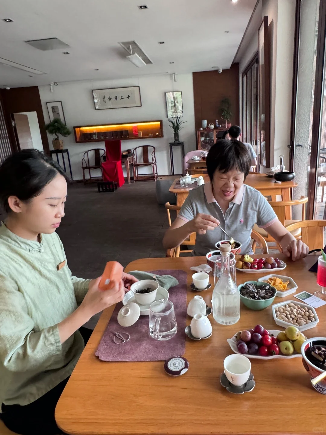 避暑好地方 茶人茶事 七夕跟妈妈来杭州进货 顺便想去山上避个暑 温度没有低很多 但是空气真的很好 茶舍的茶很香 龙井特有的豆香味很浓 茶舍环境高雅又安静 帮忙烹茶的美女都是有茶艺师证书的 动作很优美 是个非常适合放松心情的地方