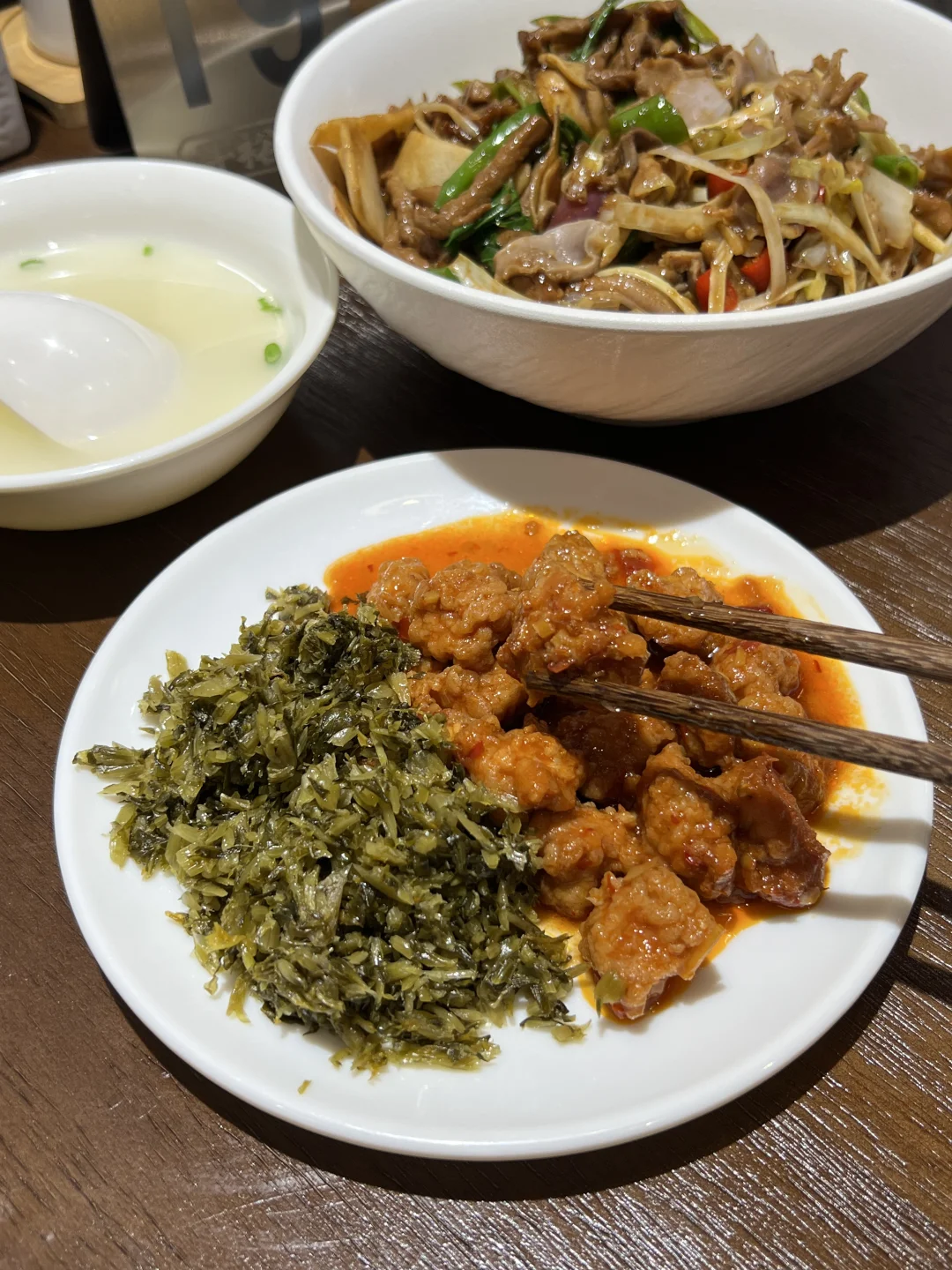 面条是手工面!真的很劲道! 每一份浇头都是师傅明档现炒的!锅气满满! 我点的是生爆牛肉面➕酸辣鸡杂!还加了一份雪菜辣肉!浇头的份量都蛮足的 味道都是刚刚好的! 鸡杂酸酸辣辣好好吃🤤是我会一直去吃的小店!