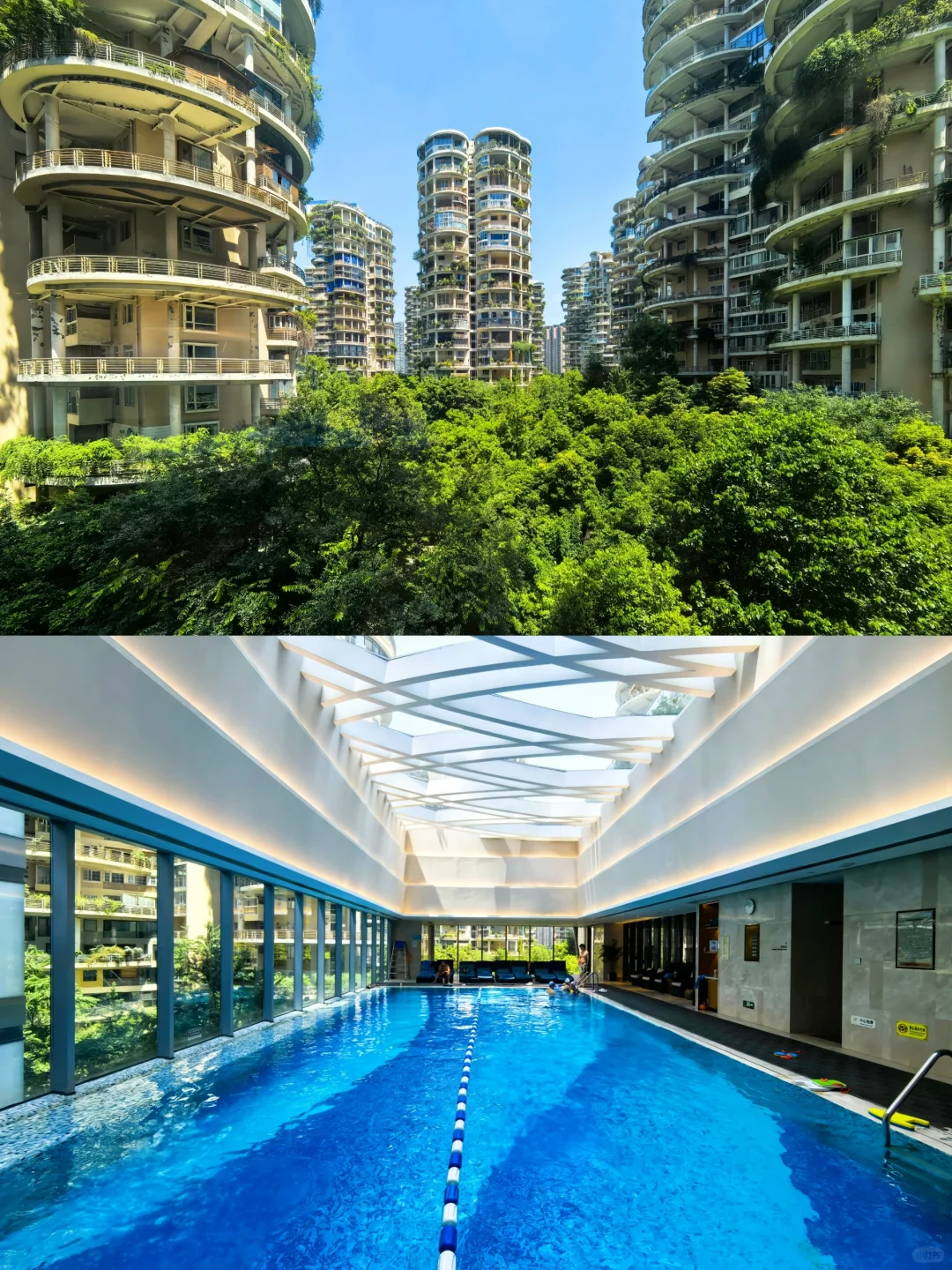 酒店泳池环境很好,顶部和两侧的镂空有种被森林包围的感觉,夏天很舒服。