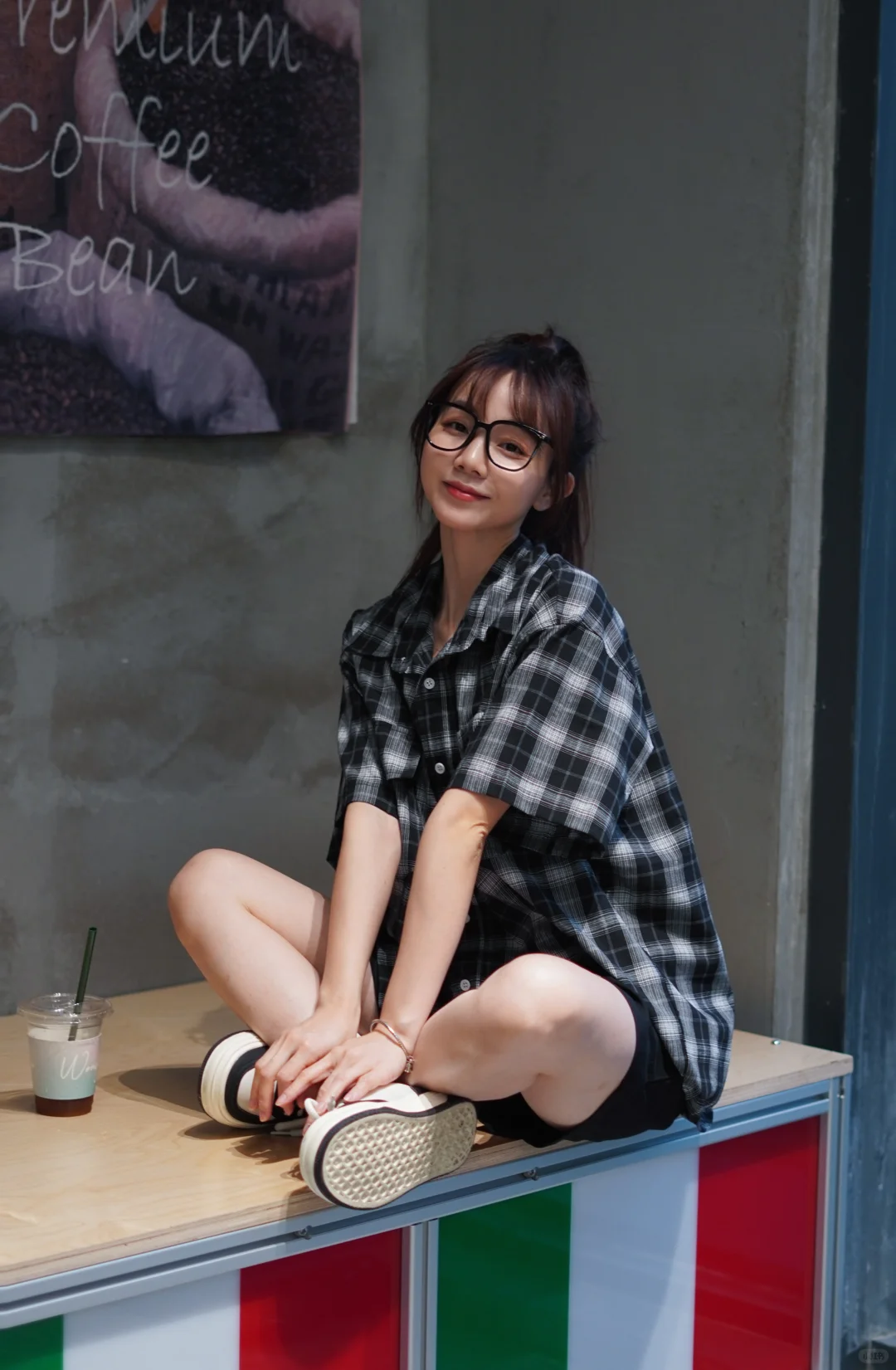 周末到咖啡店喝咖啡☕️ 放松一下心情啊❤️ 店里风格跟我的穿着很搭哦👚 这还不赶紧咔嚓几张?📷