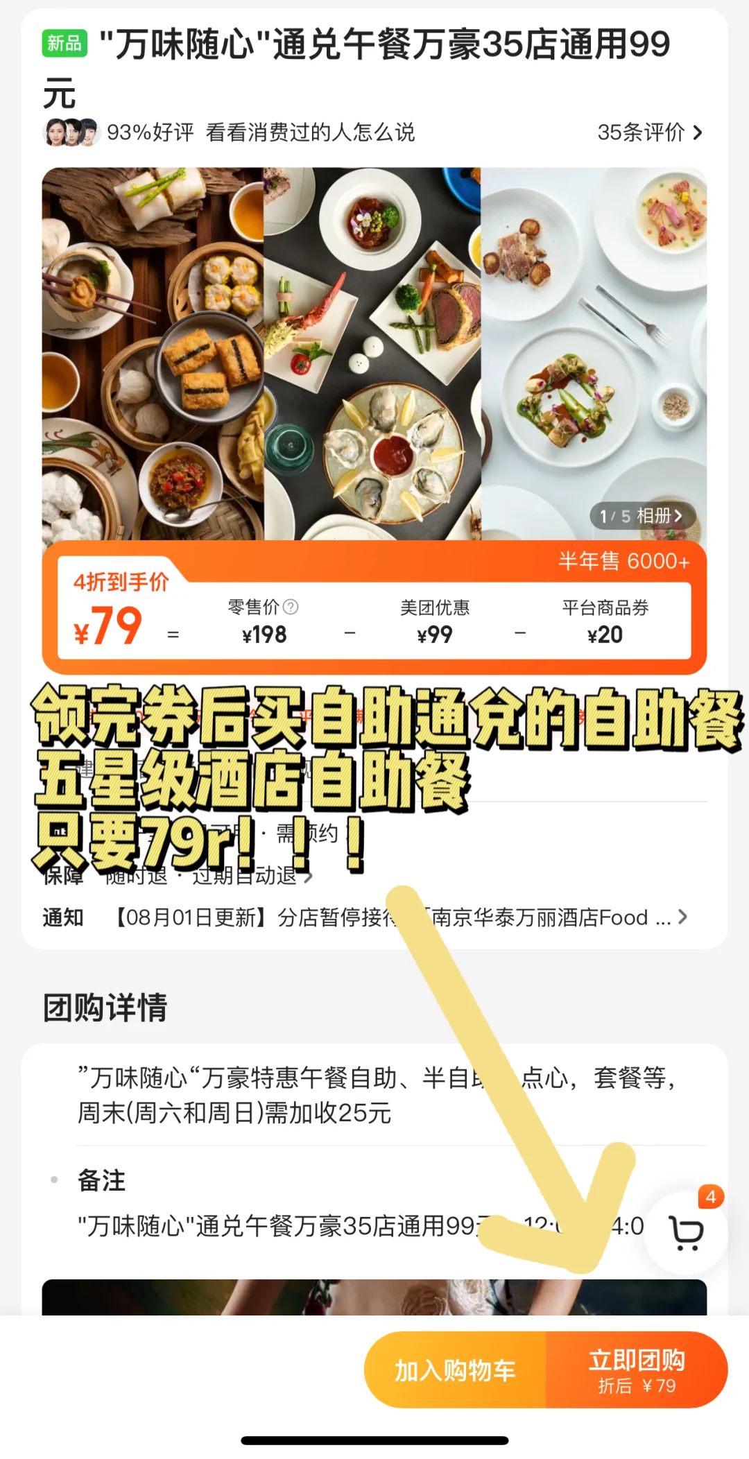 ➡︎上美团酒店,吃自助餐有各种特价优惠券!!