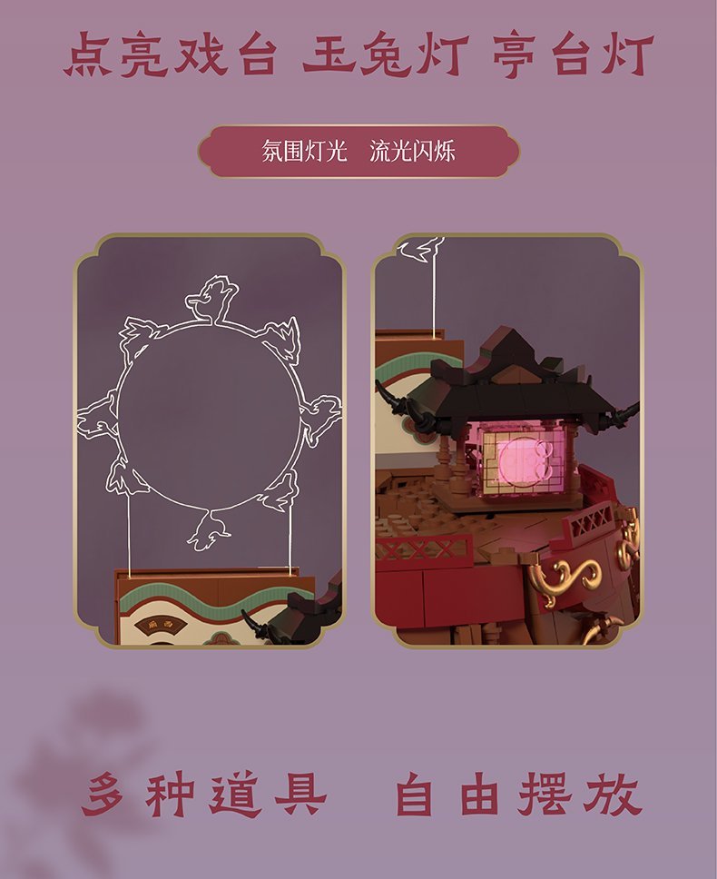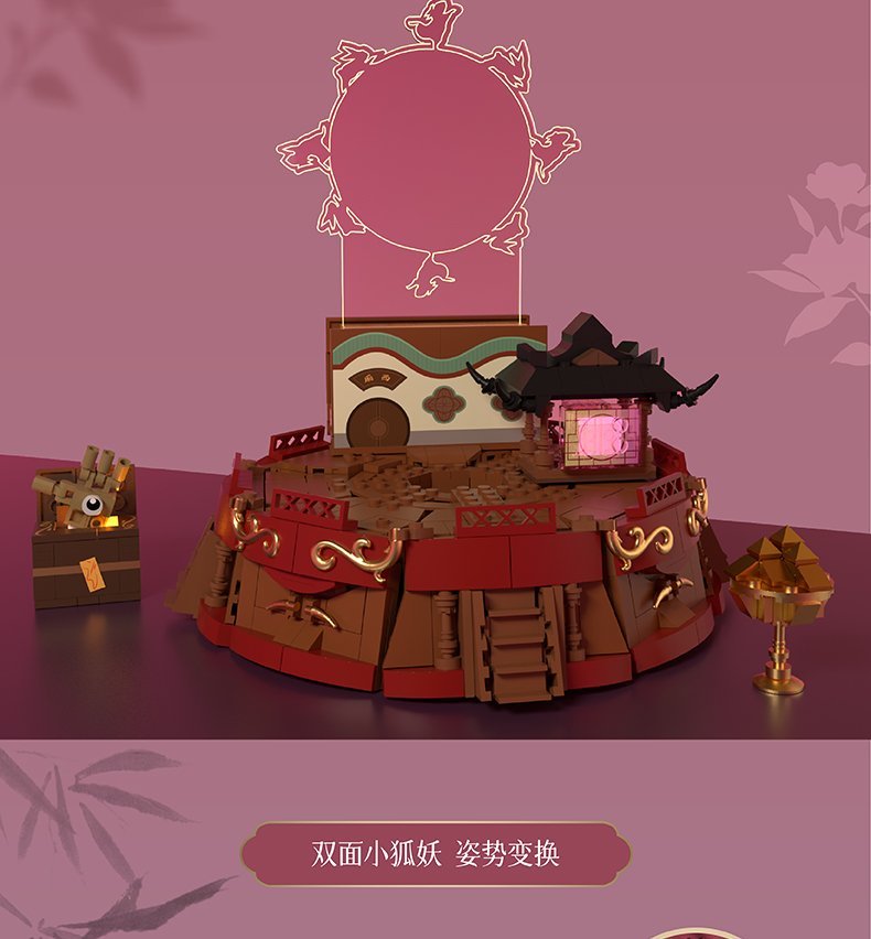 现在给大家抽一套官方出的小狐狸周边#宝青戏韵# 积木套装 !小狐狸漂亮妩媚又不失潇洒,来去如风!双面设计太还原了,还有“长着小眼睛的手”,送小白去昆仑山的空间任意门“博山炉”,玉兔灯、小亭子都是会亮的,这谁能不喜欢啊