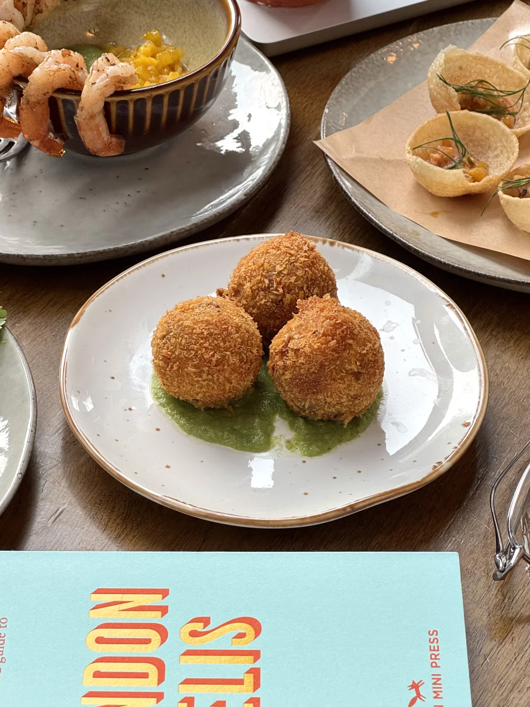 🧆意式脆炸鸭肉球:意大利餐厅很经典的一道菜品!意大利米裹上鸭肉脆炸!搭配青椒酱又平添一些风采~