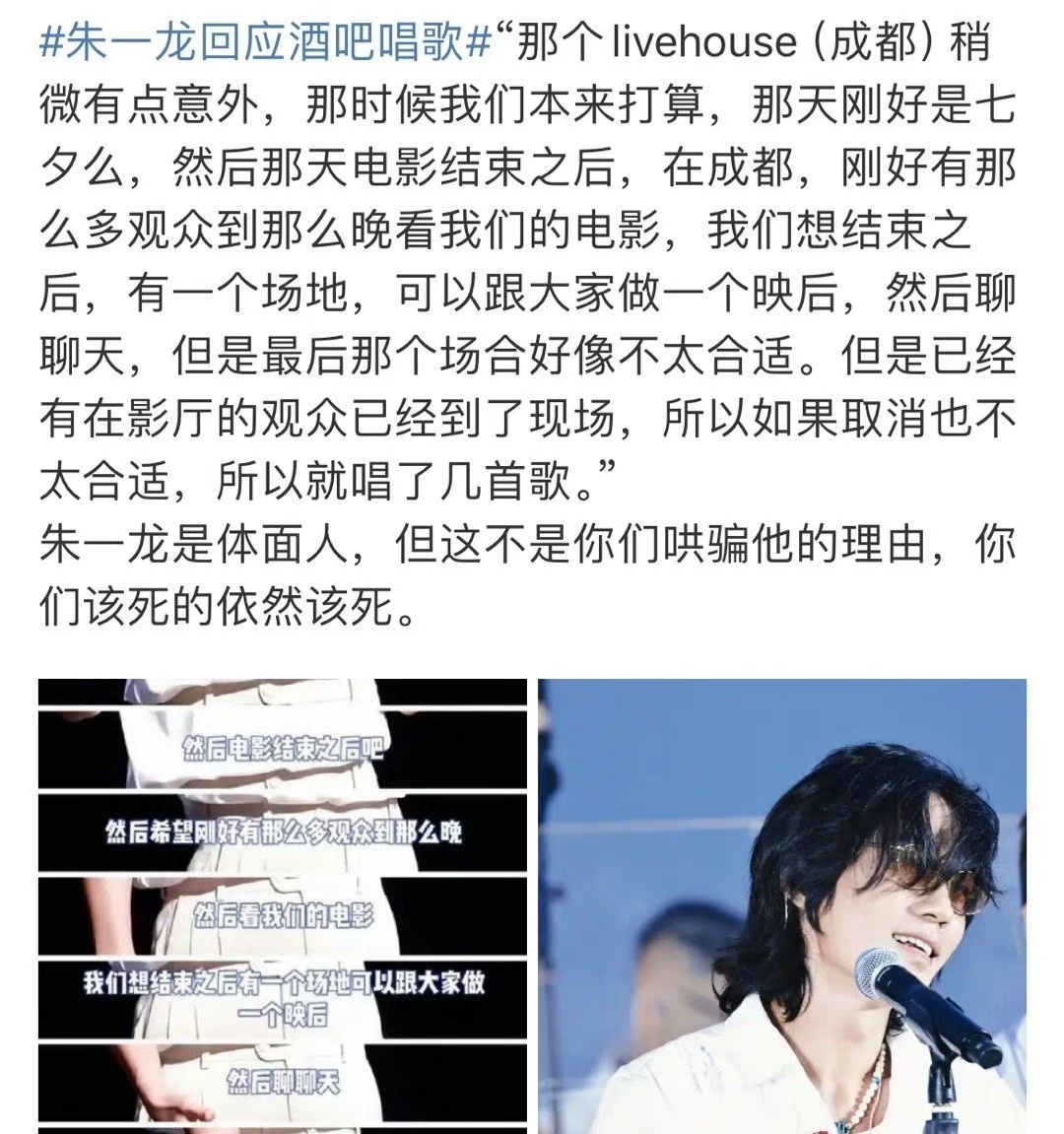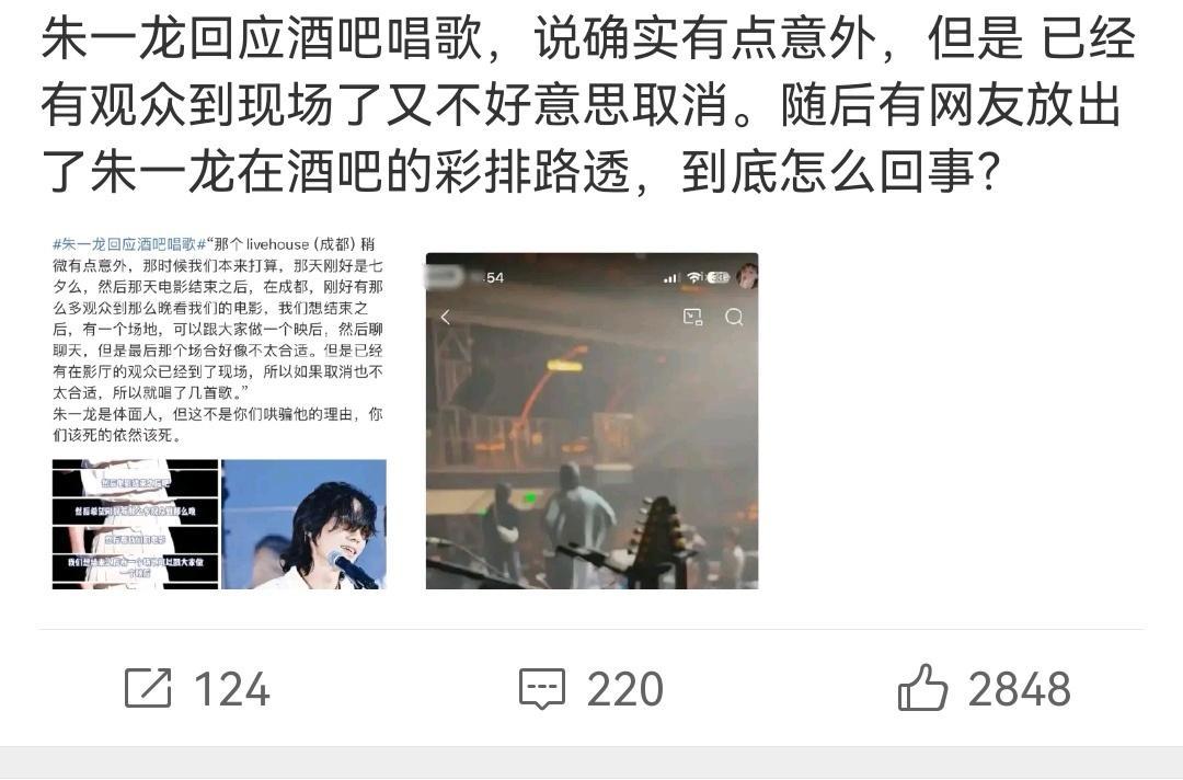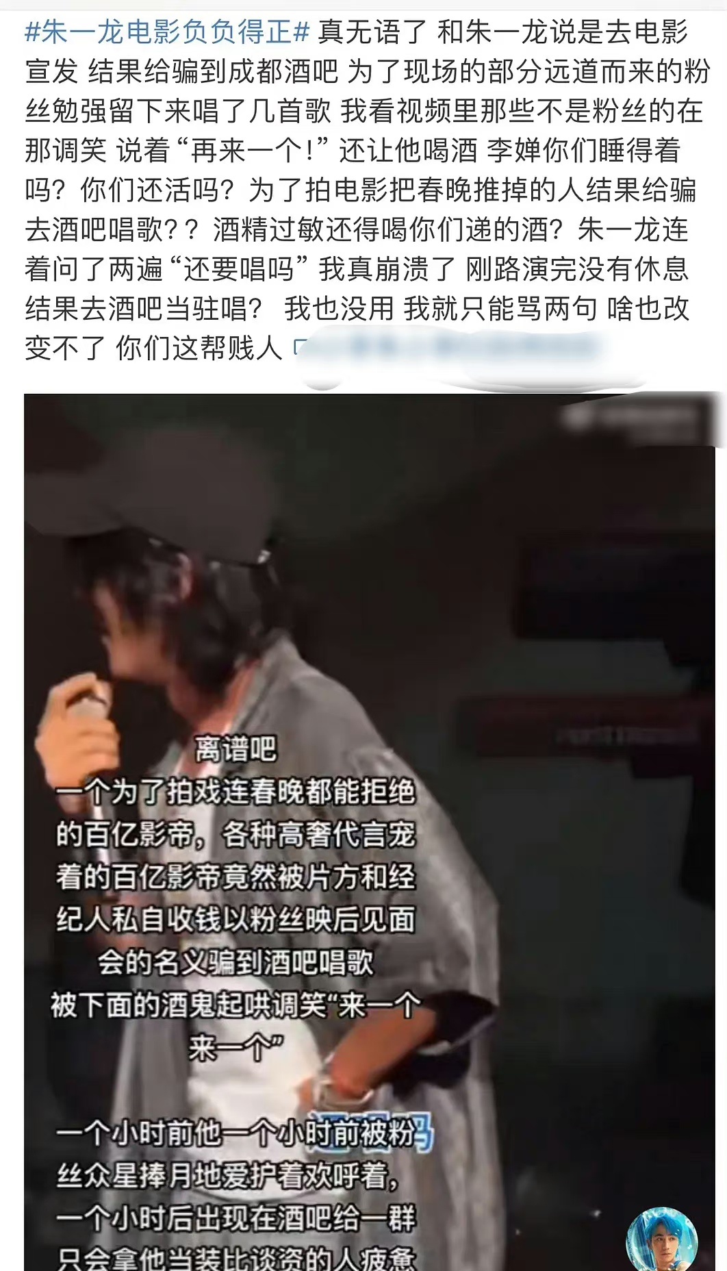 粉丝爆料,称朱一龙被经纪人和片方是以“见粉丝”的名义,骗到了酒吧唱歌……如果是真