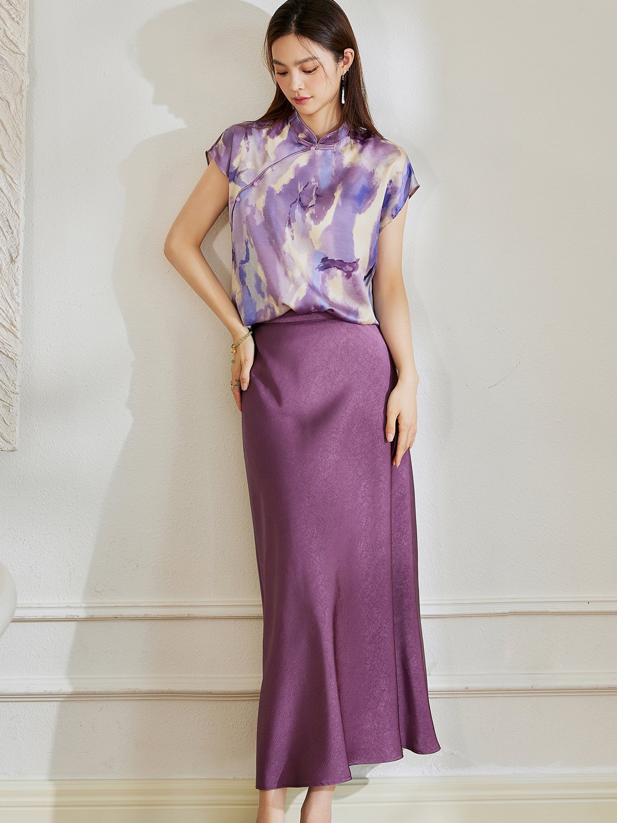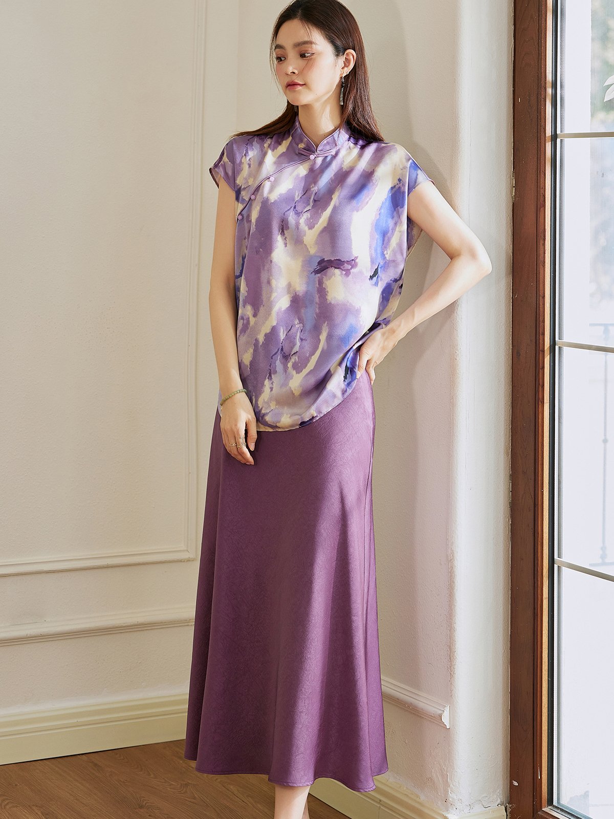 姐妹们,你们还在为穿搭发愁吗?快看过来,这件衣服我真的要吹爆它了。面料采用缎面材质,摸起来手感真的超级好,而且一点也不透。立领设计显得颈部线条非常好看,复古又高级,宽松版型不挑身材,遮肉显瘦。