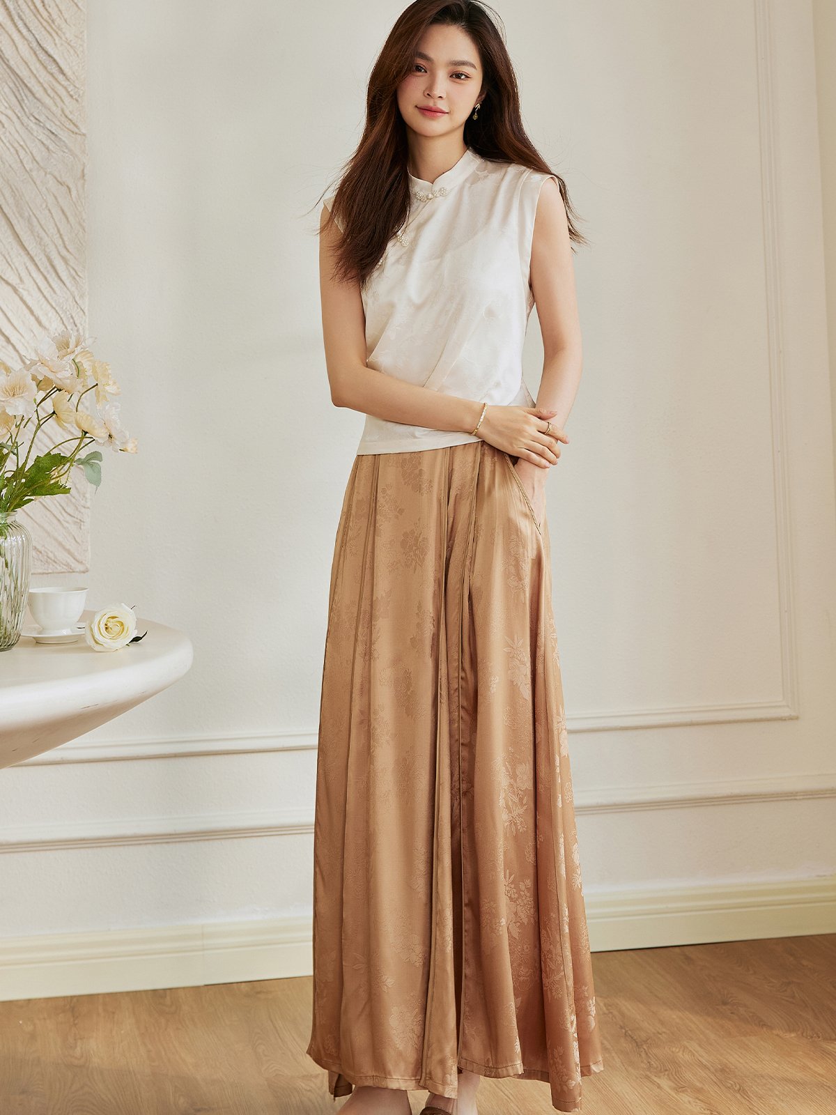 姐妹们,你们还在寻找百搭又好看的衬衫吗?今天就给大家推荐一款,它就是这款新中式立领衬衫,面料采用缎面材质,手感非常好,而且非常柔软。领口设计采用立领设计,显得颈部线条非常好看。整体版型比较修身,搭配裙子裤子都很好看。