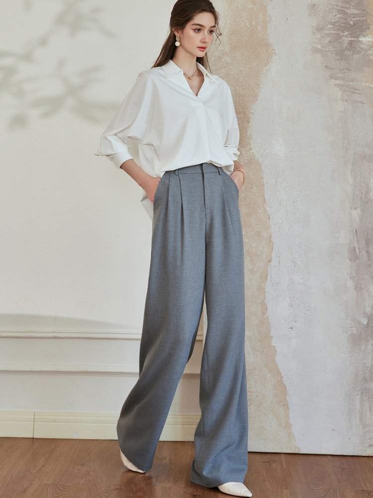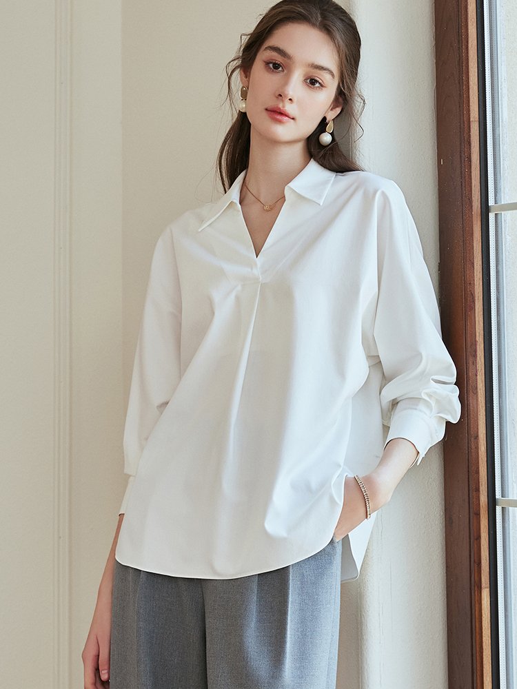 职场小白穿搭困扰多,试试这款白色衬衫吧。精致的V领设计,修饰颈部线条,让你的脸型更加精致。袖口处褶皱设计,层次感十足,搭配上蝙蝠袖,随性又潇洒。行走间尽显灵动,搭配阔腿裤或半身裙都能轻松驾驭。