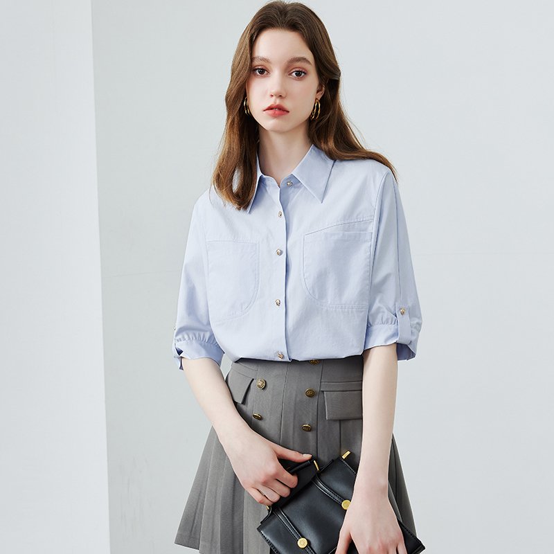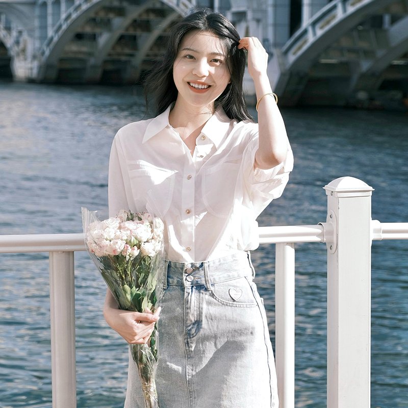 高级简约百搭设计感衬衫-轻薄透气的莱赛尔飘逸舒适 ,宽松的廓型让生活变得更加自在 ,具有设计感的口袋精致又简约 彰显时尚态度。