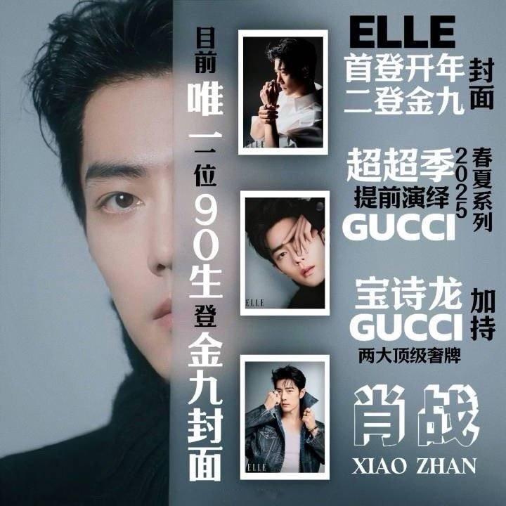 网友总结肖战ELLE金九待遇:肖战是内娱男明星中目前唯一一位90生金九封面;El