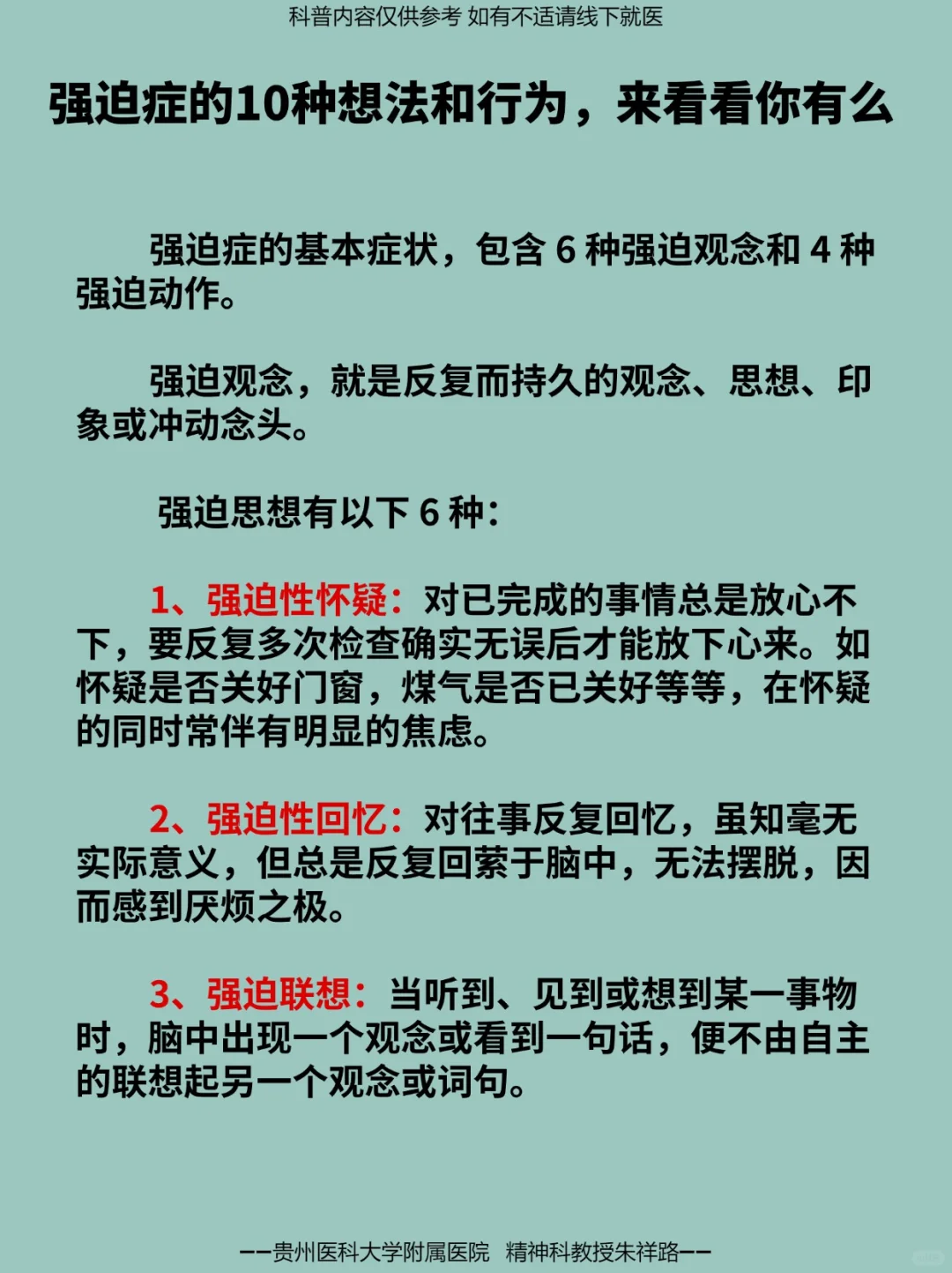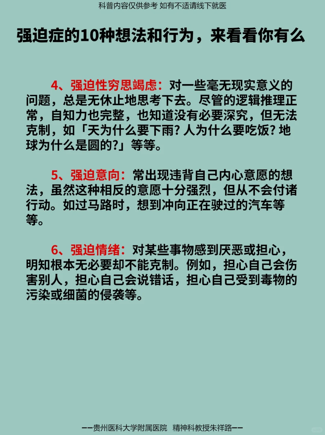 强迫症的基本症状,包含 6 种强迫观念和 4 种强迫动作。