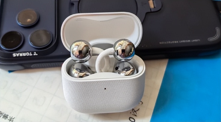 充电盒是鹅卵石形状的哑光设计,防指纹还很有质感,单手就能轻松开合。耳机本体是“三段式”设计,连接柄是柔软硅胶材质,可以自由调整开合角度,适配不同的耳廓形状。我戴着它逛了一下午街,耳朵完全没有不适感,贴合度特别好,走路也不会晃动。