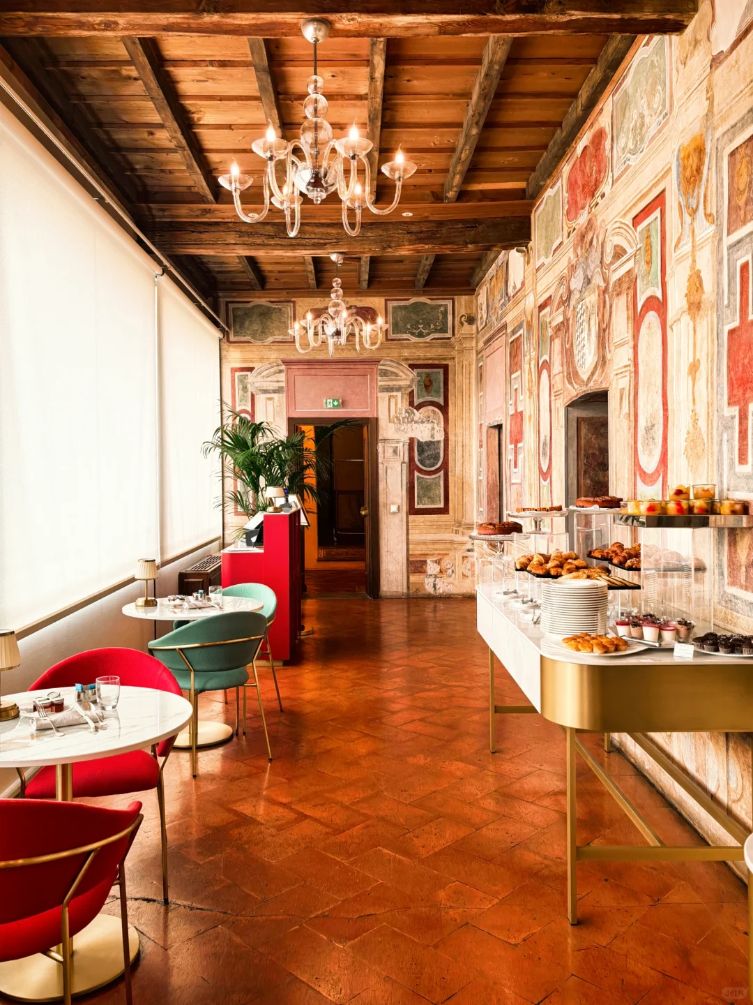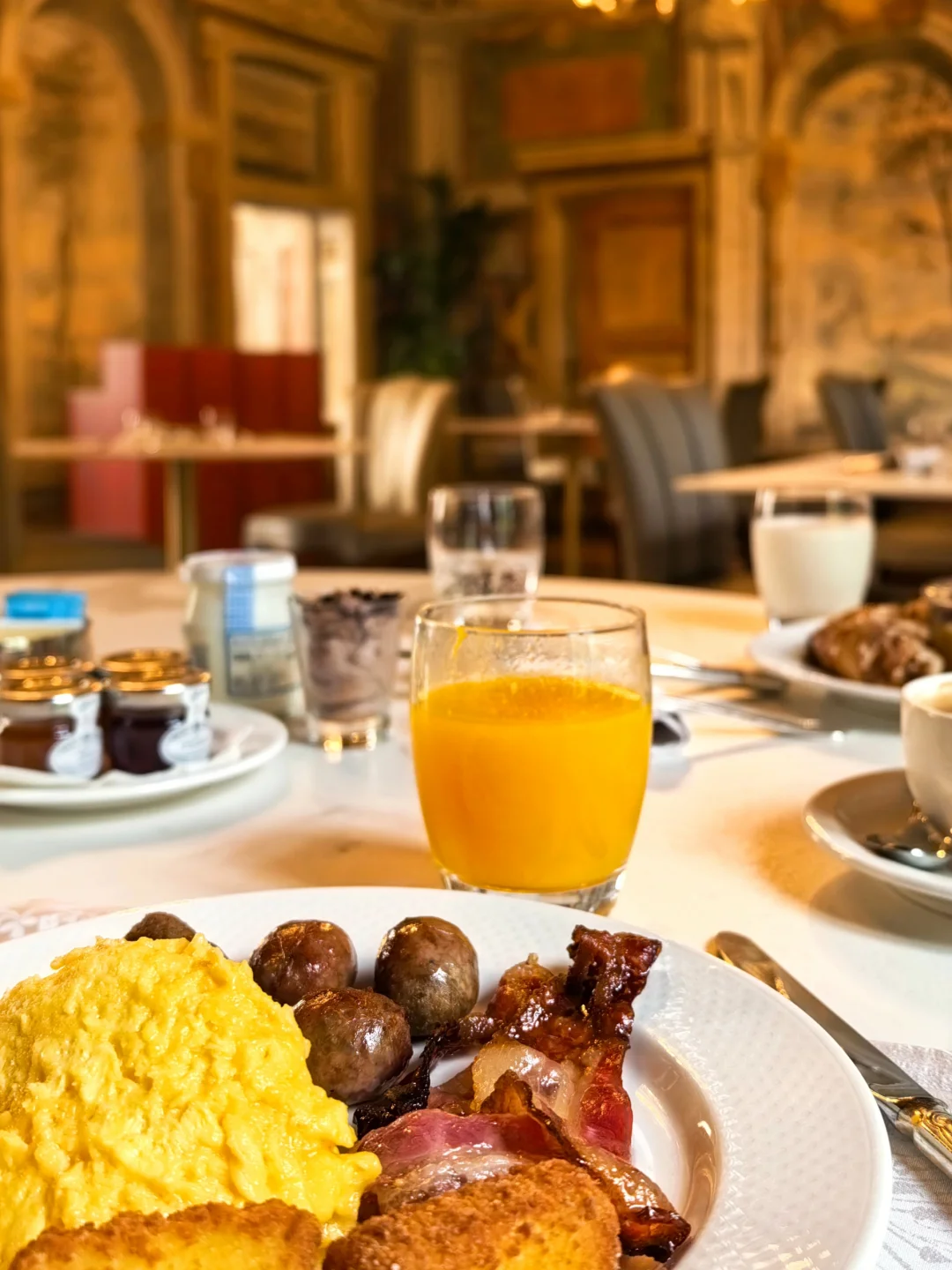 这家早餐真的很值得!环境特别好有种在宫殿里用早餐的感觉,而且有全程的侍餐服务!在欧洲同价位酒店我没有见到过。