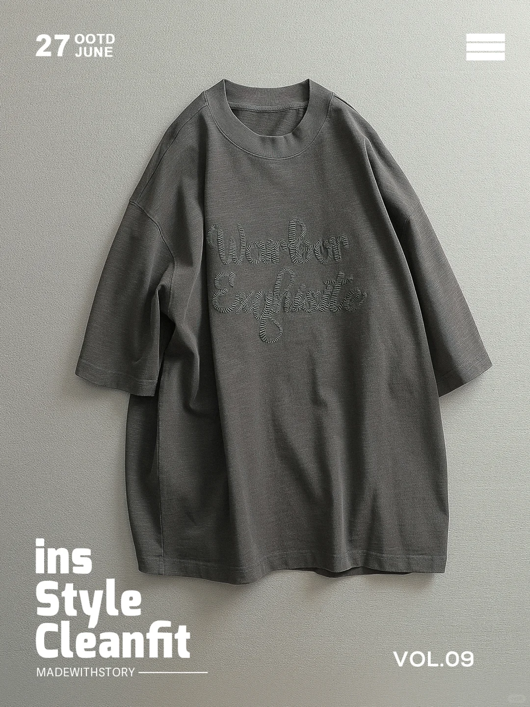 图一:一个两面的T,不确定是否可以两面穿,高支棉高密水洗后的松软和挺立,看着不候吼但有质感,很受欢迎的一个款,也适合做秋季打底!
