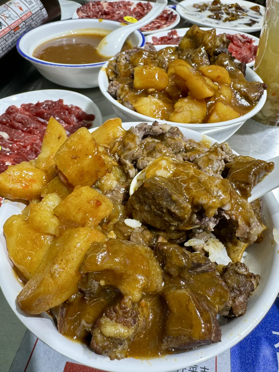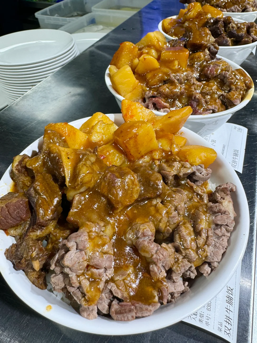 武林路啊!!吃到了双拼牛腩饭!才20多r!!😭大块牛腩🐂+牛肉+土豆🥔料好足啊!再淋上灵魂酱汁 kuku一顿炫🤤 吊龙、嫩肉、胸口油…现切的牛肉闭眼点! 再来上一杯海石花 冰冰凉凉清凉解暑~