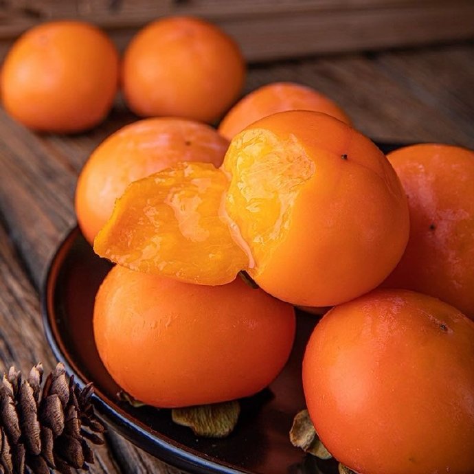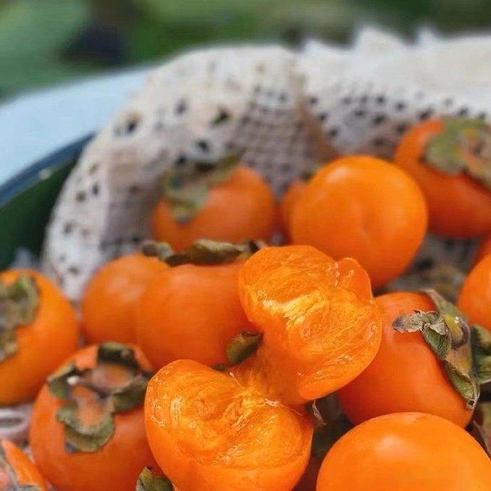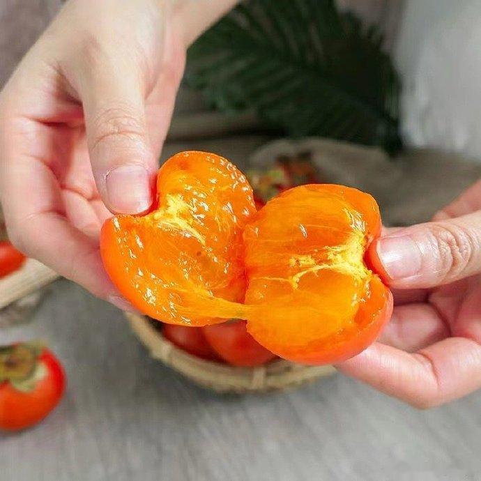 #植物君优选#陕西火晶柿子上新~2.8-3斤24-30个,下雨不采摘发货顺延[转发并关注@植物君优选8.25日抽2位粉丝各得火晶柿子一份]火晶蜜柿个小色红,晶莹光亮,皮薄无核,果肉清香蜜甜,吃起来清滑爽口,甜而不腻,果皮轻薄易剥离。发货时为7-8成熟的硬柿子,收到货后需要放3-5天时间变软后食用~变软的柿子请冷藏保存。