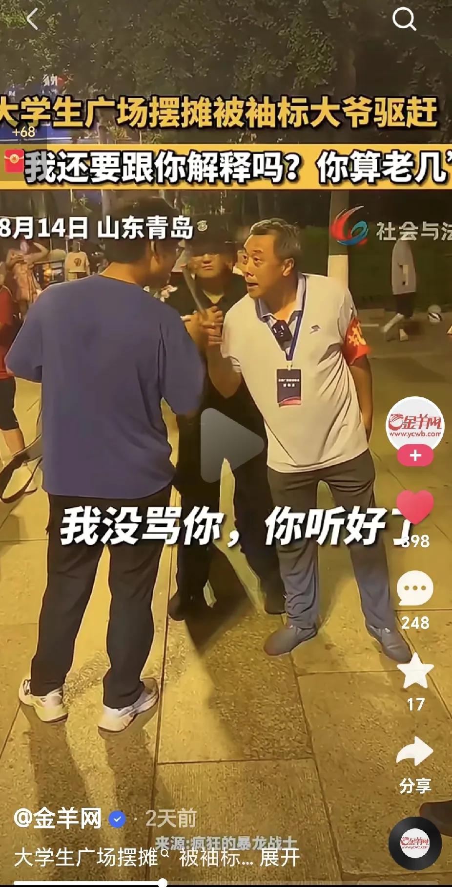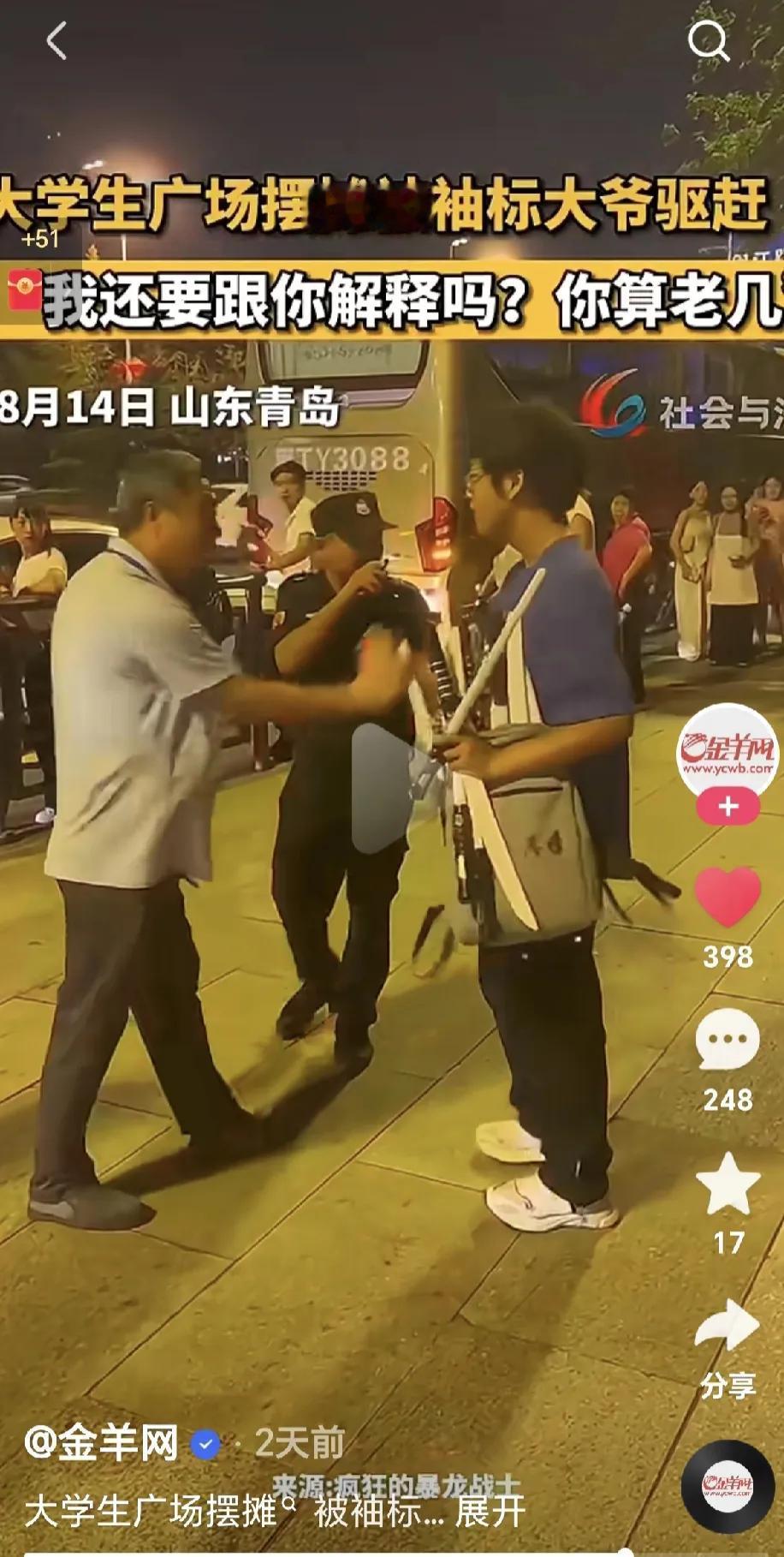 杨志卖刀遇到红袖箍大爷 这次我站大爷 肯定是有规定不让卖 搞不好是大学生先出言不逊,而且你看看他卖的啥?