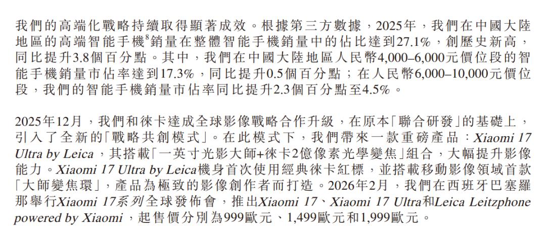 并且,由于核心零部件涨价( 财报中并没有具体阐述,大概率为内存 ),小米手机的毛利率已经从 10% 以上降到 8.3%,就没想着赚你钱。而在 2026 年,内存价格进一步上涨,小米处于千元机的价格带,还会进一步受到打击。