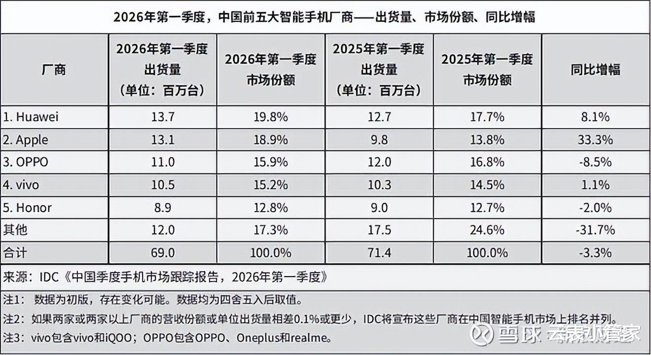 小米全球暴跌19%,OPPO、vivo勉强维持,荣耀也在下滑。涨价的锅谁都背,但只有华为和苹果没慌。