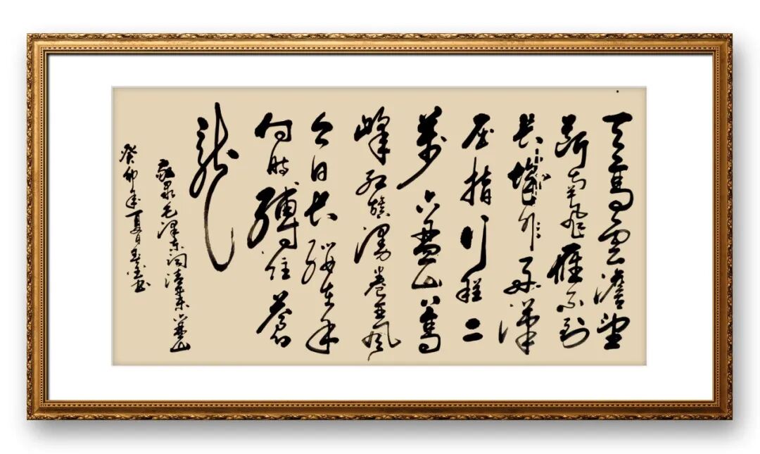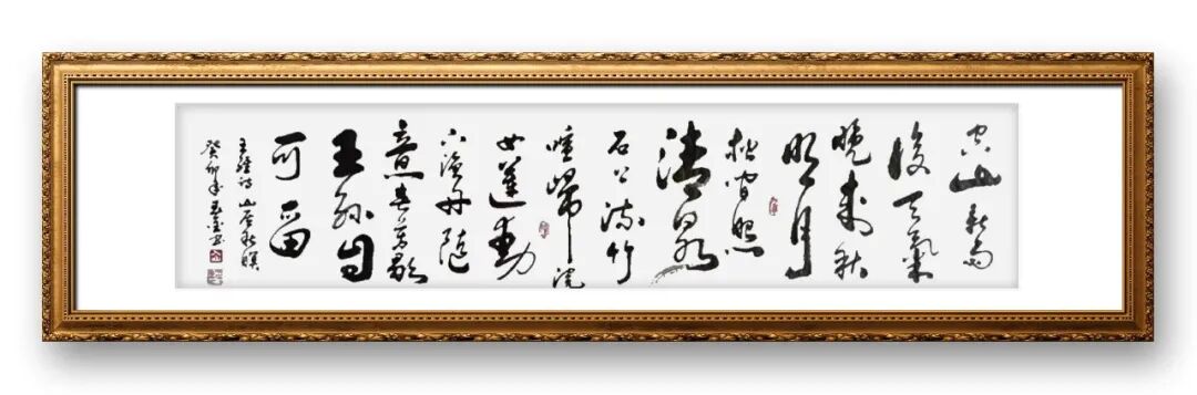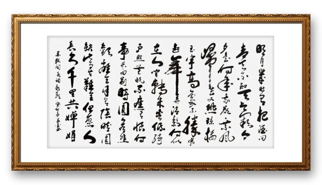 刁老师的草书,最突出的特点是“抒情性与艺术性的统一”。他认为,草书是书家内心世界的直接投射,书写的过程就是情感表达的过程。因此,在创作中,他将自身的情感、心境与笔墨融为一体,让草书作品成为情感的载体。书写豪放旷达的内容时,他的笔墨舒展奔放,线条跌宕起伏,墨色浓淡变化强烈,尽显豪迈之气;书写沉静内敛的内容时,他的笔墨则相对舒缓,线条凝练紧凑,墨色清雅温润,尽显平和之气。这种将情感融入笔墨的创作方式,让他的草书作品不仅有形式之美,更有情感之深,让人在欣赏笔墨之美的同时,也能感受到书家的内心世界与精神追求。