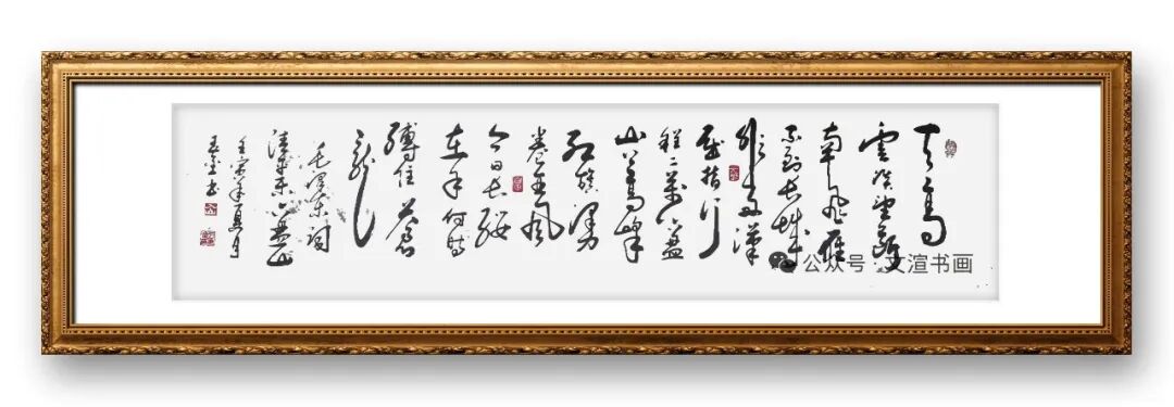 在笔墨技法上,刁老师的草书尽显“灵动洒脱、力透纸背”的特质。他注重线条的表现力,以中锋用笔为核心,线条圆润流畅、刚柔并济,提按转折间尽显韵律感与节奏感。与隶书的沉稳不同,他的草书线条灵动多变,牵丝映带自然流畅,不刻意纠缠,却又相互呼应,如笔锋游走间,线条时而舒展奔放,时而凝练紧凑,时而厚重饱满,时而轻淡飘逸,枯湿浓淡的变化自然无痕,让线条更具生命力与表现力。在笔法运用上,他打破了楷书、隶书的规整笔法,注重“简省”与“连贯”,将汉字的笔画简化融合,却始终保留汉字的本体形态,避免了过度潦草的随意性,如“之”“乎”“者”等常用字,在他的笔下简约而不失韵味,连贯而不失法度,尽显草书的简约之美。此外,他注重笔势的营造,笔势连贯流畅,一气呵成,如书写草书长卷时,笔锋游走间毫无滞涩之感,线条的起伏跌宕与墨色的枯湿变化相互映衬,让整篇作品充满动感与韵律感。