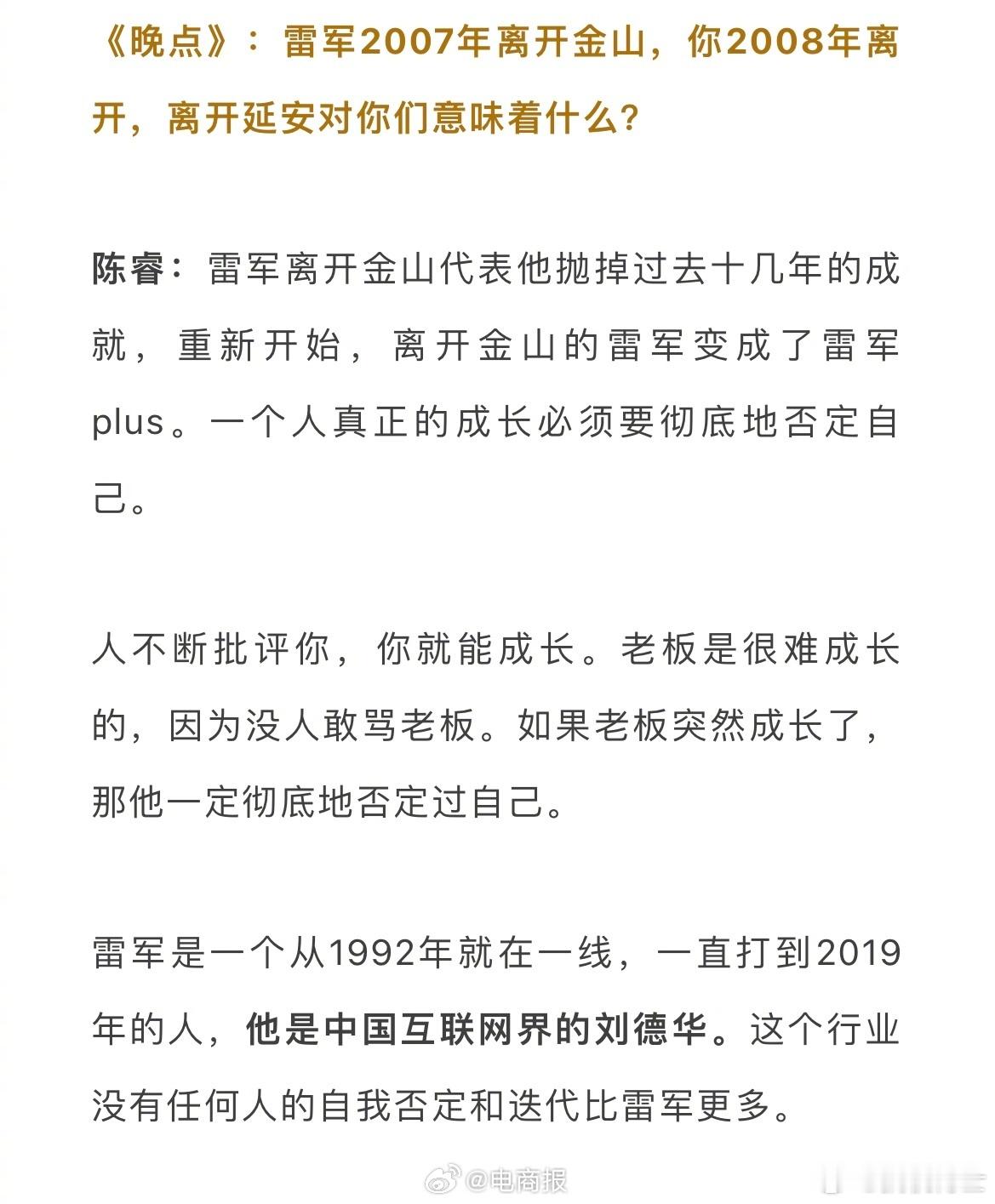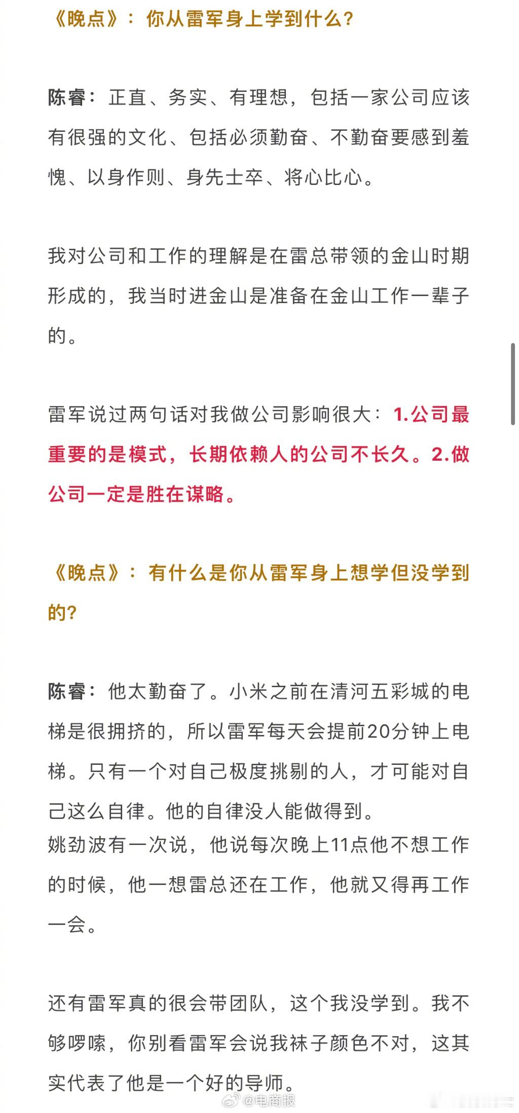 B站CEO陈睿谈雷军:中国互联网界的刘德华,正直,务实,勤奋,自律,有理想!
