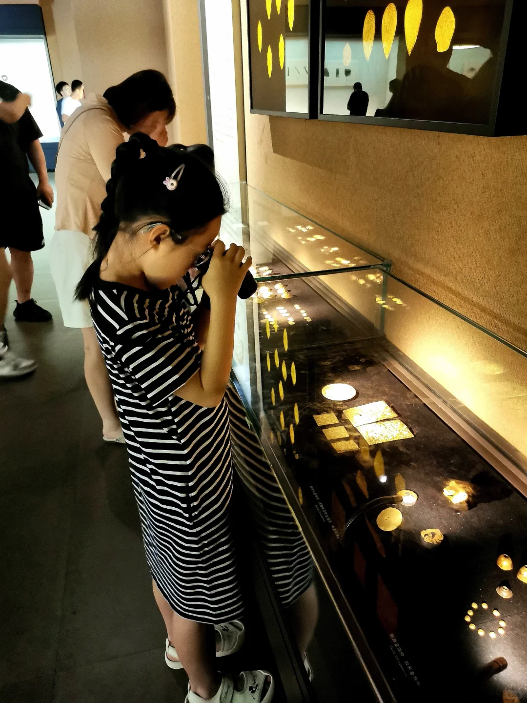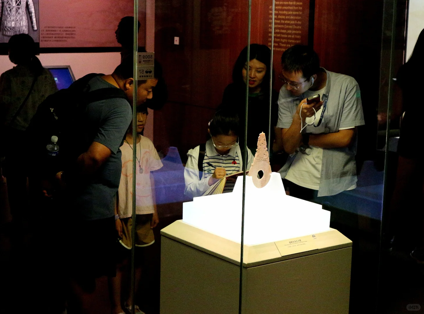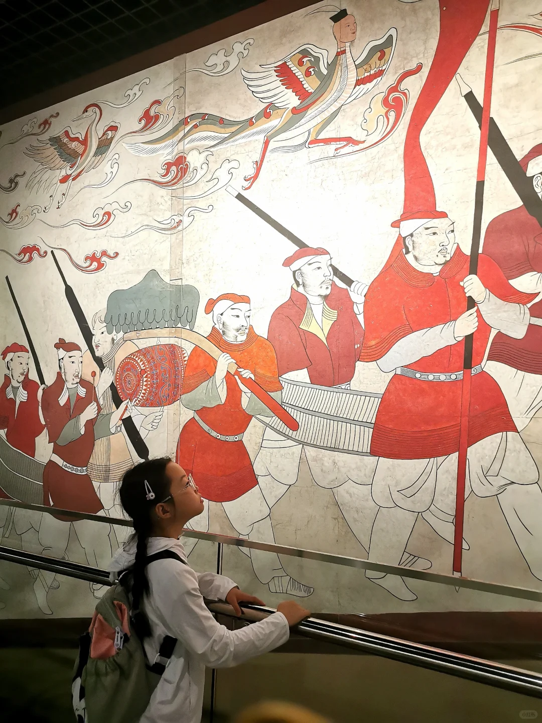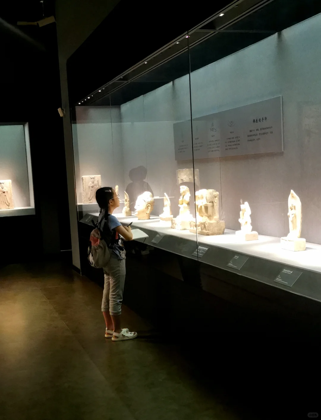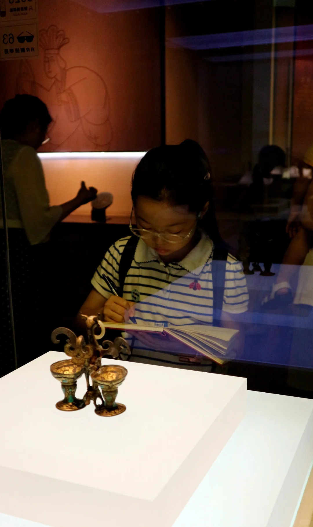 娃实现了在博物馆里自主参观,不吵不闹全身心沉浸,自得其乐,这对当妈的来说是种什么样的体验呢?简直不要太爽了! 这次来河北博物院,主要是为了《敕勒长歌》这个展,顺便再把其他展厅复习一遍。 现在带劢看展已经非常轻松,她基本能跟我同步看一个新展了。看展就是看逻辑,看展要先看展线!这一点这家伙现在贯彻的不错。 《敕勒长歌》前面的部分独立看下来对她来说不容易。六镇起义、北魏如何分裂到东、西魏,如何被北齐、北周分别替代这一大部分还好。但是这之中,更为具体的细节和人物关系比较复杂,再加上作为论据的文物很多都是墓志,别说对她,有些对我都是挑战。但是可喜的是,她已经能和我一起边看边讨论,从打酱油的小跟班儿变成了看展搭子。 《敕勒长歌》看下来用了一天半的时间,剩下半天,我和河北博物院的志愿者老师们交流学习,她自己跑去楼下看了《珍奇生灵——濒危动物展》。 我们又用了1.5天,我们一起复习了北朝壁画、两个中山、燕赵悲歌。最后的1.5天,她戴好手表基本就是单飞状态了,自己记笔记,用虫镜看青铜器的纹饰、看玉器的纹饰、看金器的细节,然后就是各种画,随心所欲地画她的心头爱们。另外,特别要说一下《燕赵悲歌》赵国那部分的成语剧场部分,孩子可以戴上耳机沉浸在成语典故的世界里,尽情学习相关的文史知识。每个展厅内的纪录片,她都认真看了两遍以上。我就可以踏实做我的工作,保存资料。