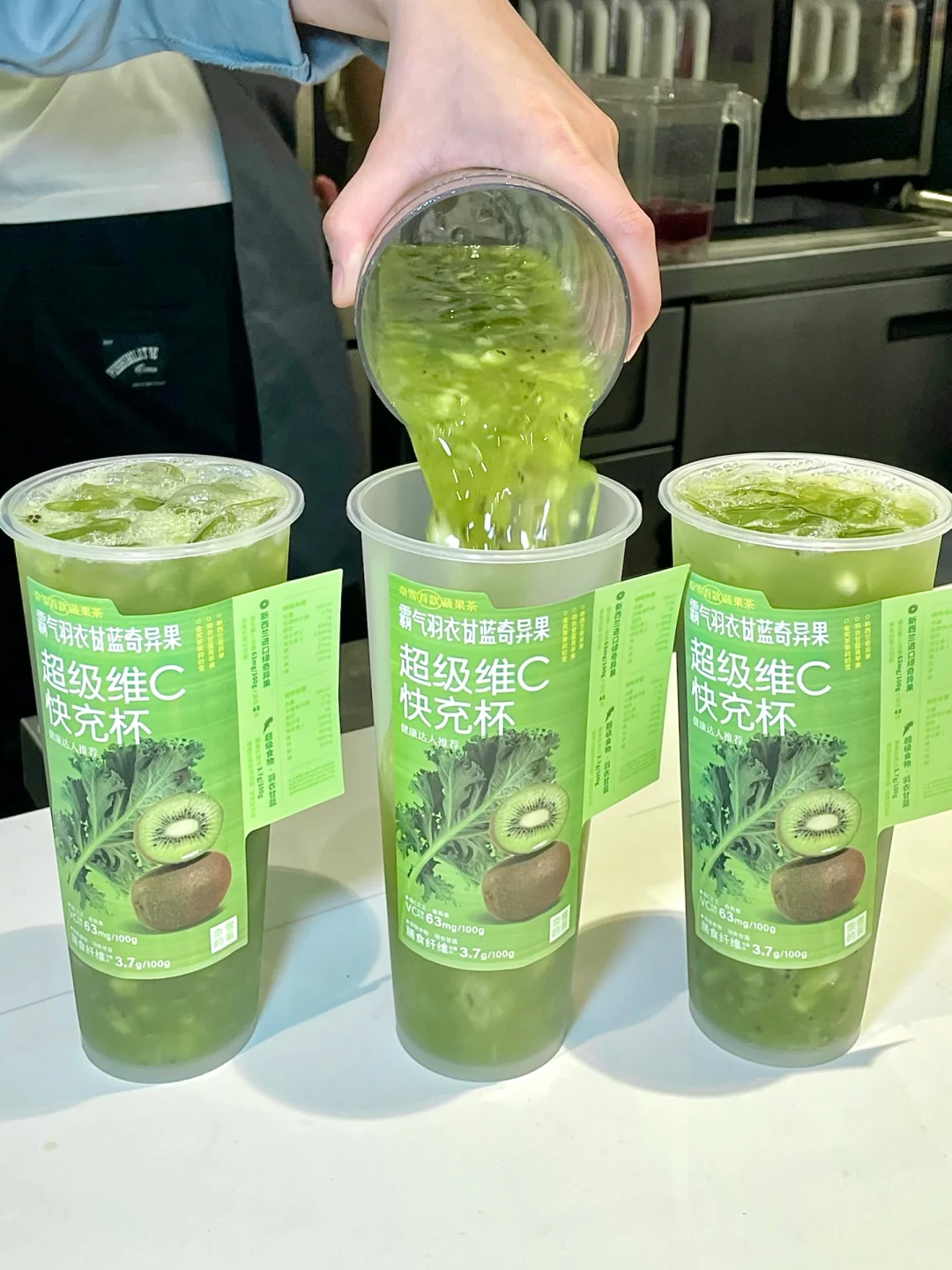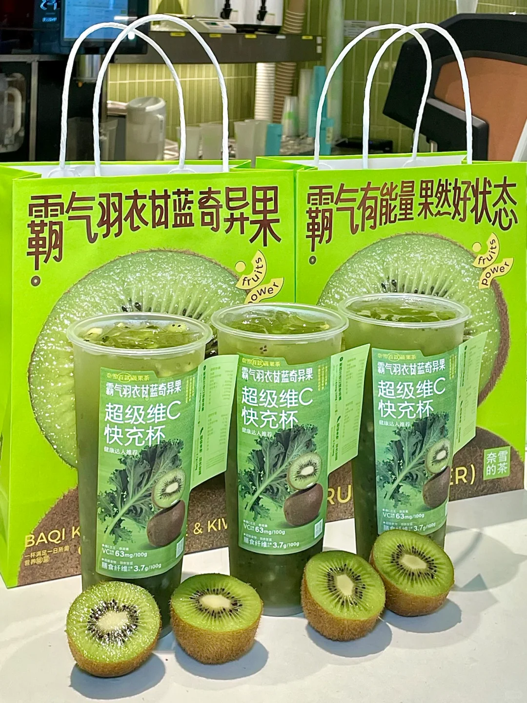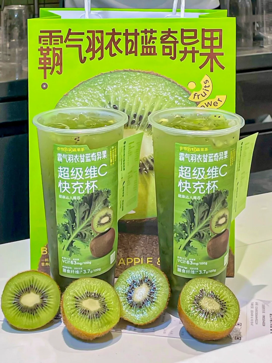 wkkk!!奈雪居然进入果蔬圈了!!! 这次新品简直是健康界的宝藏饮品啊!! 低卡健康的蔬果茶也太适合爱健身的朋友了! 减脂期嘴馋的家人们一定要冲!! ✔霸气羽衣甘蓝奇异果 清新的羽衣甘蓝,搭配上进口酸甜的奇异果 入口都是满满的现切奇异果果肉!加上茉莉初雪茶汤 口感清新又解腻,感觉整个人都被大自然拥抱了 原料都是低卡的!不敢想象这一杯下去会有补充多少维C和膳食纤维!! 低卡健康又好喝!奈雪你也太是那个了!