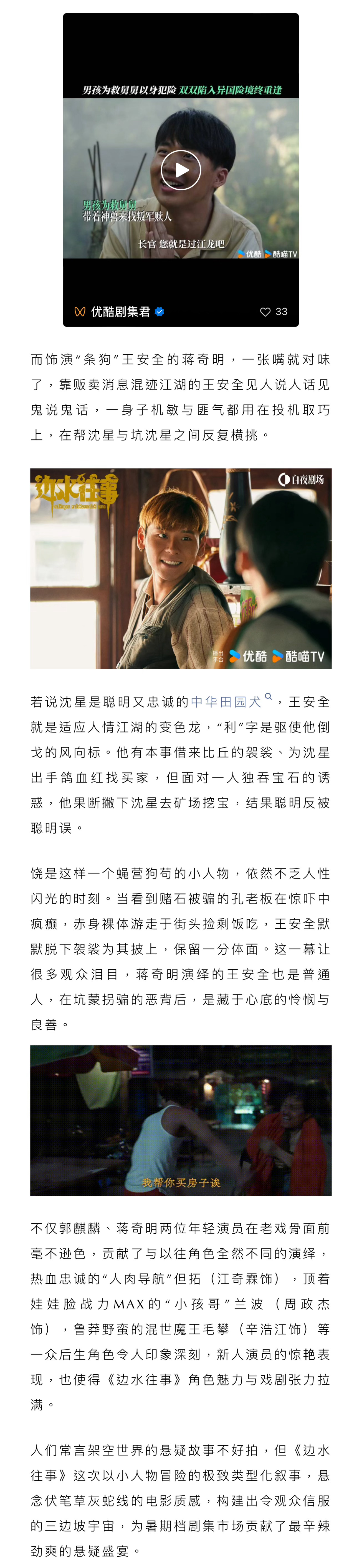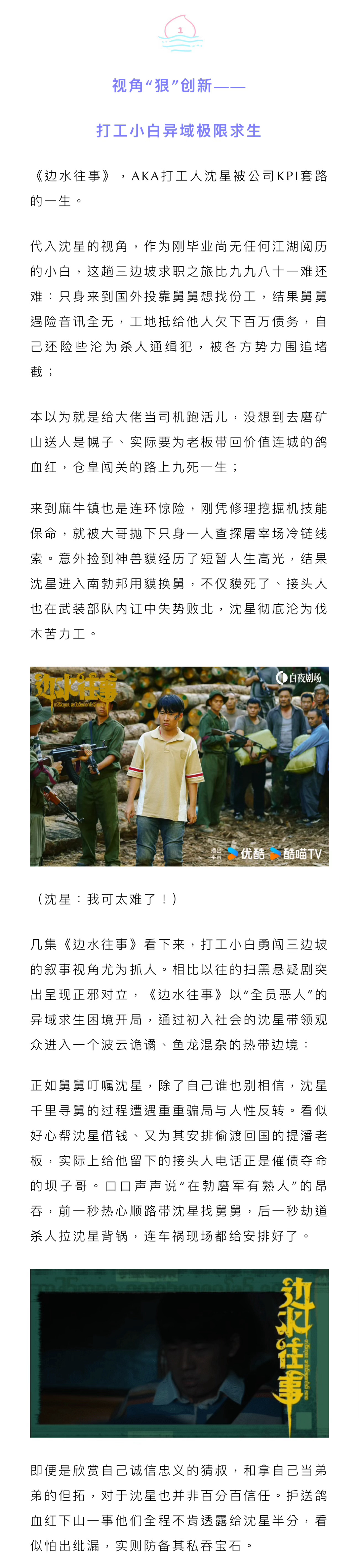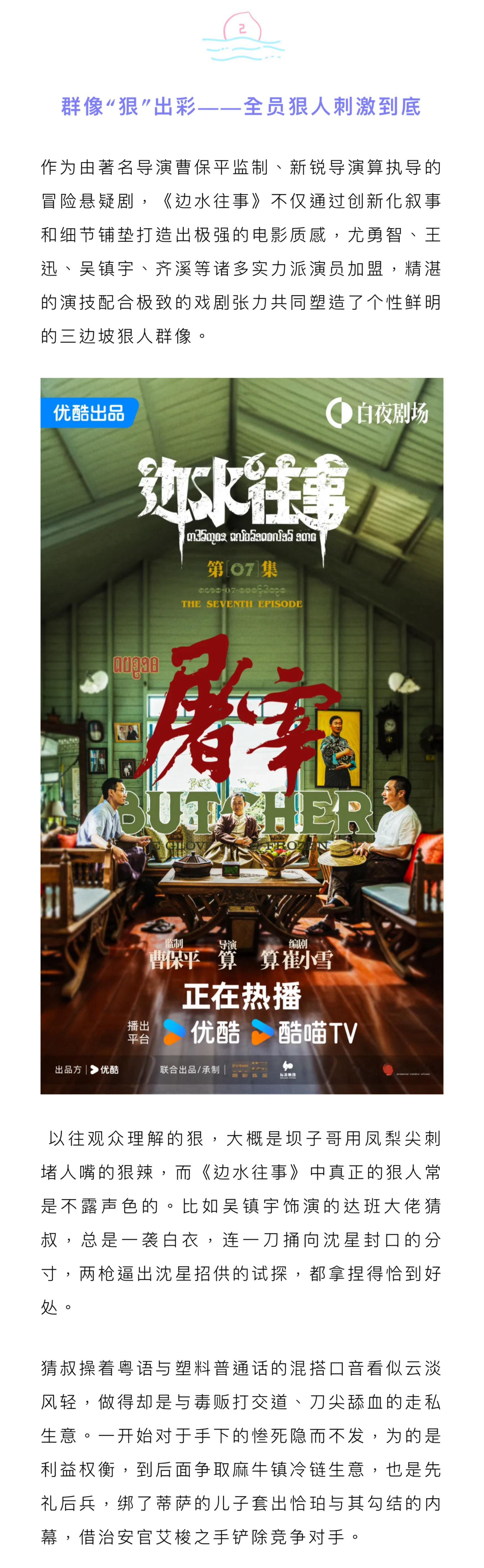 一言不合就开枪爆头,尔虞我诈中套路千万,作为优酷白夜剧场的第三部作品,《边水往事》小人物热带边境冒险的开局堪称炸裂,已然成为成为暑期档悬疑犯罪类剧集的口碑TOP1。