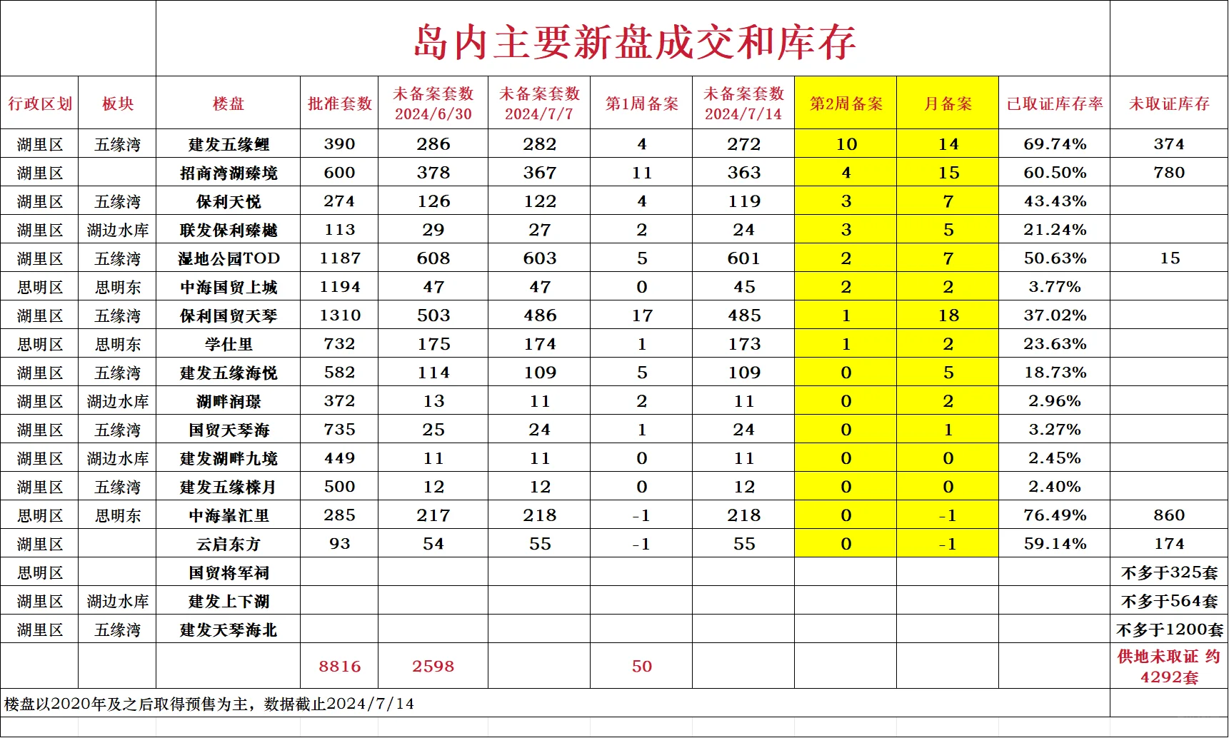 7月厦门岛内新盘成交排名