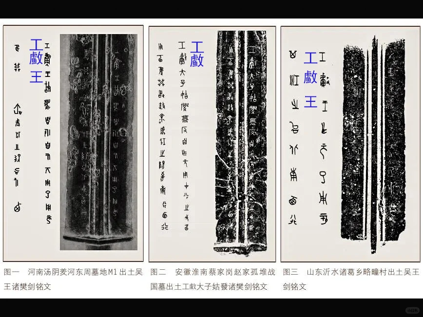 重点字义, 䲣,春秋吴国宗名,图四,吴国剑铭文。虞,氏名,曾与吴都是虞氏。