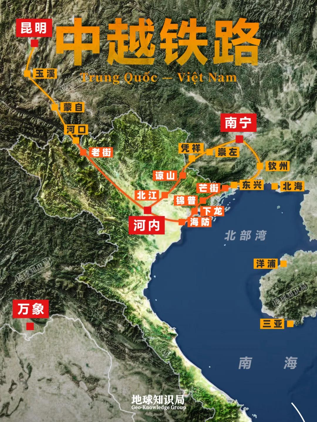 之所以强调“标准铁轨”,是因为中越之间已有铁路联通,从云南到广西,都不乏直抵越南的通道。