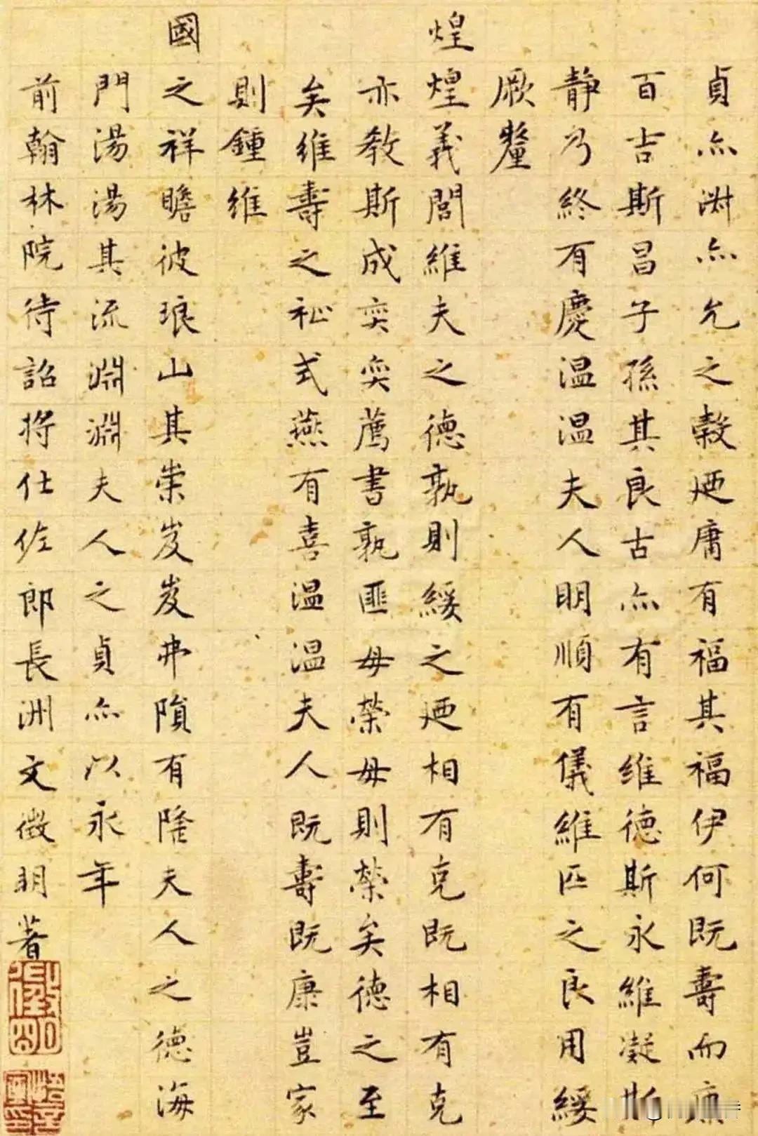 明代书法中,文徴明是显眼的存在,寿命长,而且还“高产”,一辈子留下了不少作品,而且质量上乘。 在众多作品中,小楷尤其多,直到90岁,他还在写小楷。 今天,小编向你推荐的,就是他的《人瑞颂》。 作品字体工整秀丽,笔力遒劲,虽为老年所写,但丝毫看不出疲态,一如既往的稳定、精致。 #毛笔书法##书法##小楷##楷书#