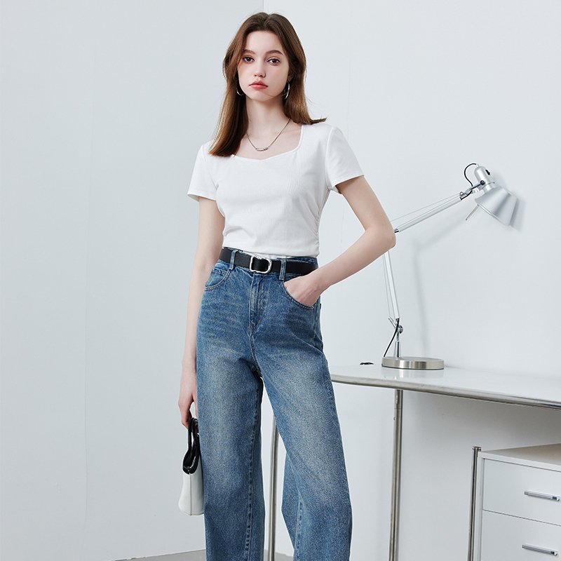 褶皱修身桃心领短袖T恤-简约又韩系的款式,修身展示好身材 桃心领独特美观, 能很好地展示锁骨 。单穿叠穿皆可 ,修身版型 ,恰到好处的松量显瘦不紧绷,正肩袖优化肩型 遮肉显瘦提高气质,各种体态穿着都毫无压力 轻松驾驭日常出行。