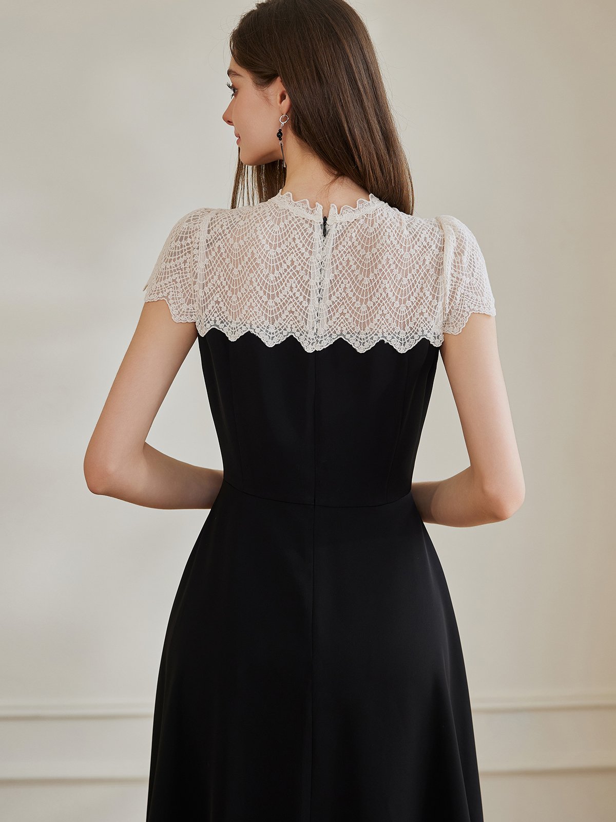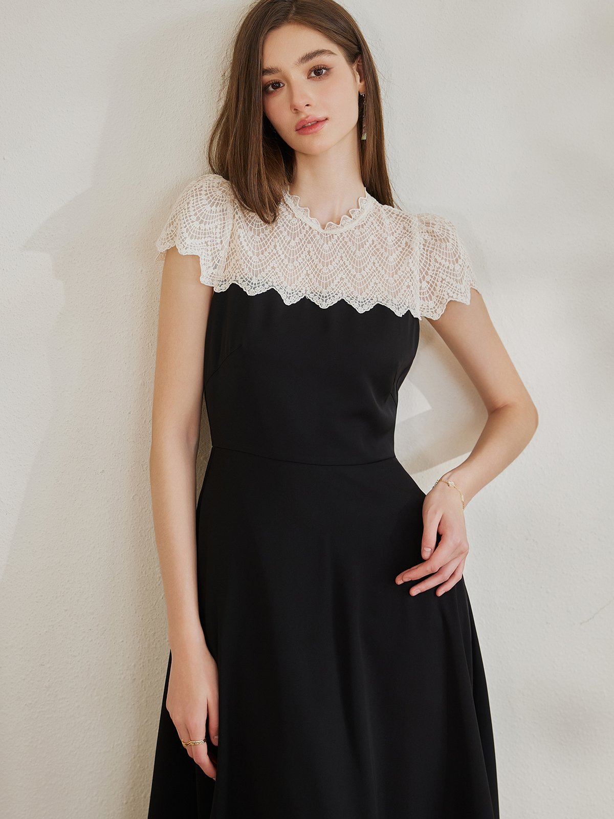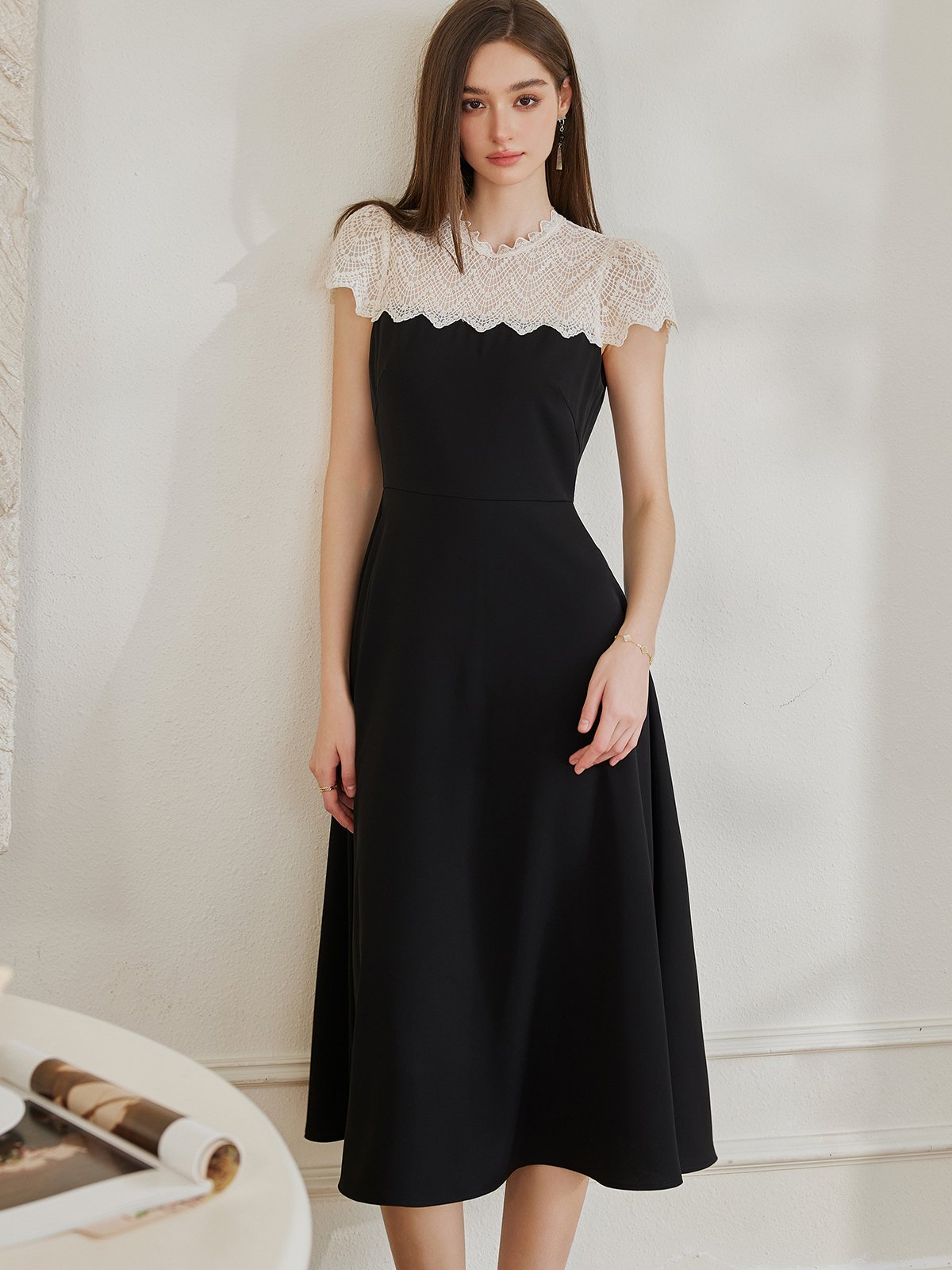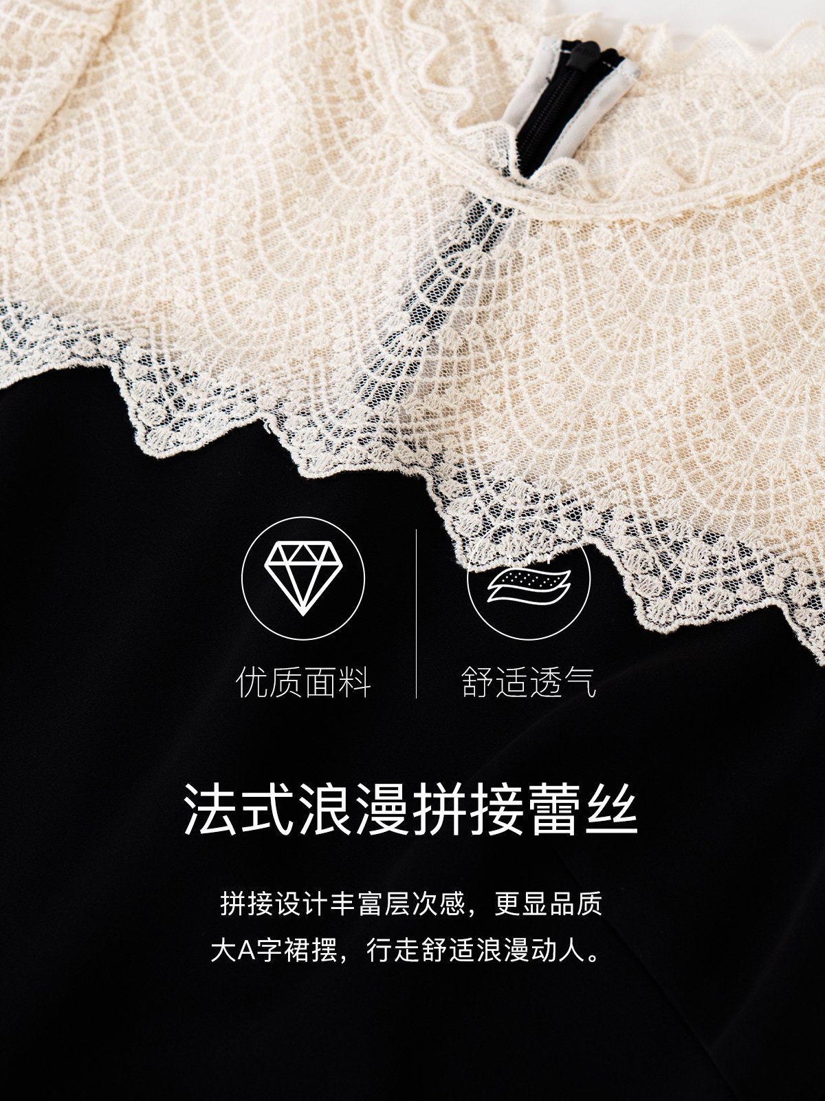 罗衣优雅大摆拼接蕾丝连衣裙