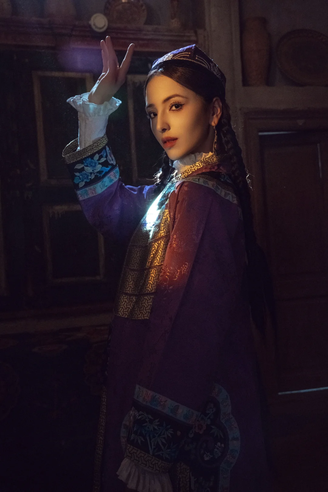 ● 长袍:维吾尔族称为“袷袢”,是一种长袍式的服装,通常采用丝绸、棉布等材质制作。长袍的颜色鲜艳,图案精美,常常绣有花卉、几何图形等传统纹样。