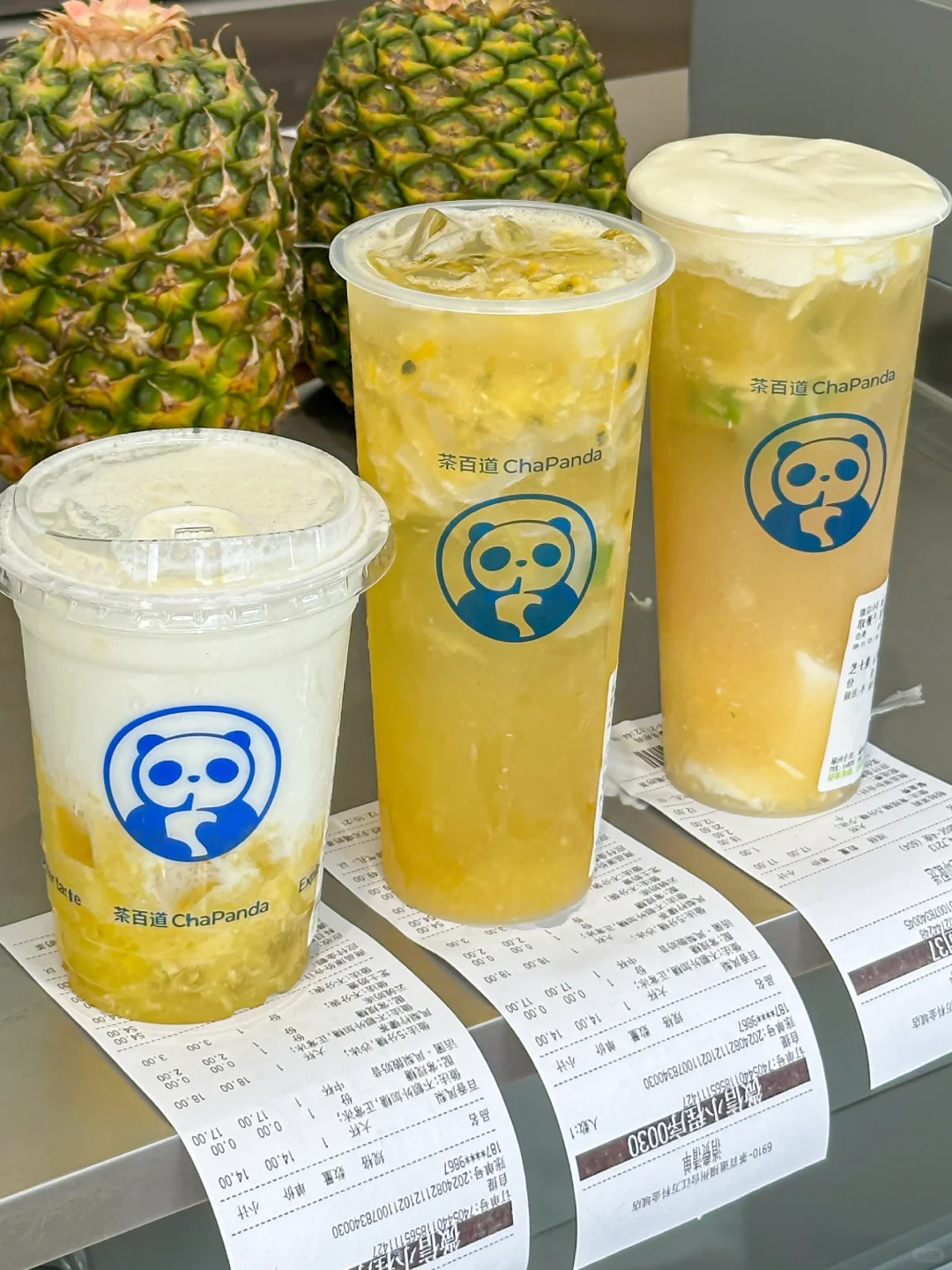 我的老天奶。。你永远可以相信茶百道的果茶! 凤梨控有福了!金凤梨新品真的每一杯都好喝! 🍍凤梨酸奶 凤梨果肉搭配丝滑细腻的活菌酸奶!! 酸酸甜甜的谁喝谁爱!! 里面还喝得到果肉和冻冻~口感好丰富!! 🍍凤梨柠檬茶 不得不说。。果茶就是茶百道的统治区啊! 这杯真绝了!!来自菲律宾的凤梨酸甜平衡的刚刚好!!热带水果的夏日风味拿捏住了!我加了奶盖和奶冻更好喝了! 🍍百香凤梨 这杯除了凤梨还有黄金百香果、柠檬和椰果!! 真的太清新了!!一口下去清爽解腻!! 夏天喝这个真的是解暑神器啊!!