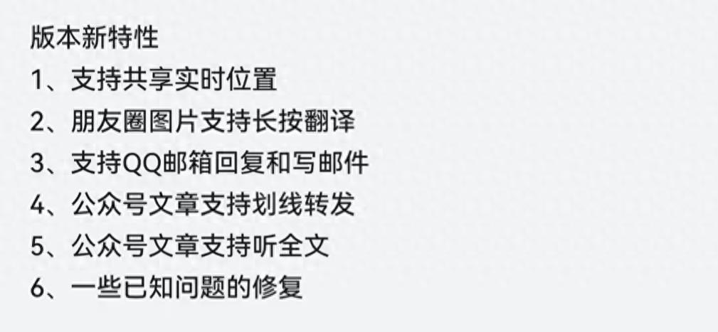 这次更新,鸿蒙版微信还上线了许多贴心功能:假期偶尔要处理工作?只要启用QQ邮箱提醒,绑定QQ账号后,不用切App,微信里就能直接写邮件、回邮件,临时任务也不耽误游玩心情;刷朋友圈看到外文图,长按就能直接翻译,再也不用截图去别的软件翻译;看到精彩的公众号文章想转发,划线就能以图片形式分享,好友还能直接扫码查看文章;密密麻麻的长文不想看?现在可以“听全文”,用耳朵“刷”内容,眼睛终于解放了。