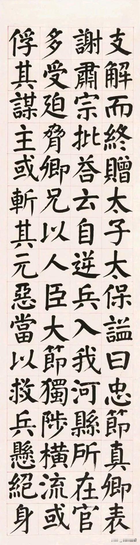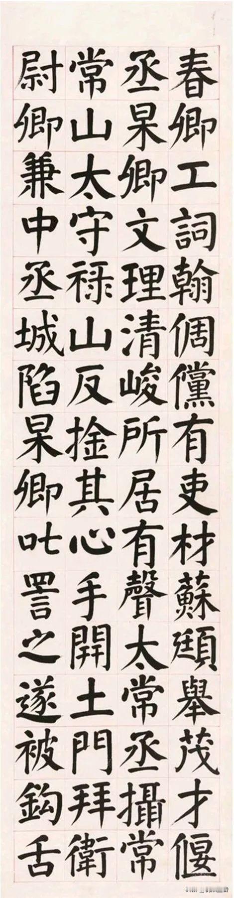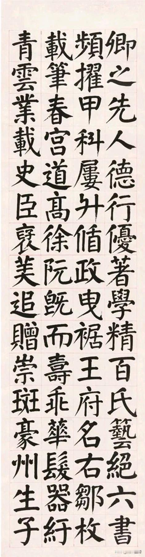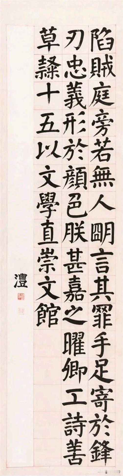 清代钱沣对颜真卿那是“真爱”,也是清代学颜有成就者。 这件楷书,是钱沣临颜真卿《颜家庙碑》四屏,其雄浑、老辣、精妙,不是初学颜体者所能比拟。 而且,钱沣的颜体楷书对后世影响比较大,清末至民初,学颜者很多都学他的楷书,像谭延闿、谭泽闿兄弟就是其中一例。 而且,钱沣的学颜,不是亦步亦趋地学,他更喜欢平正的风格,颇有《麻姑》的气韵。 #毛笔书法##书法##楷书##颜体#