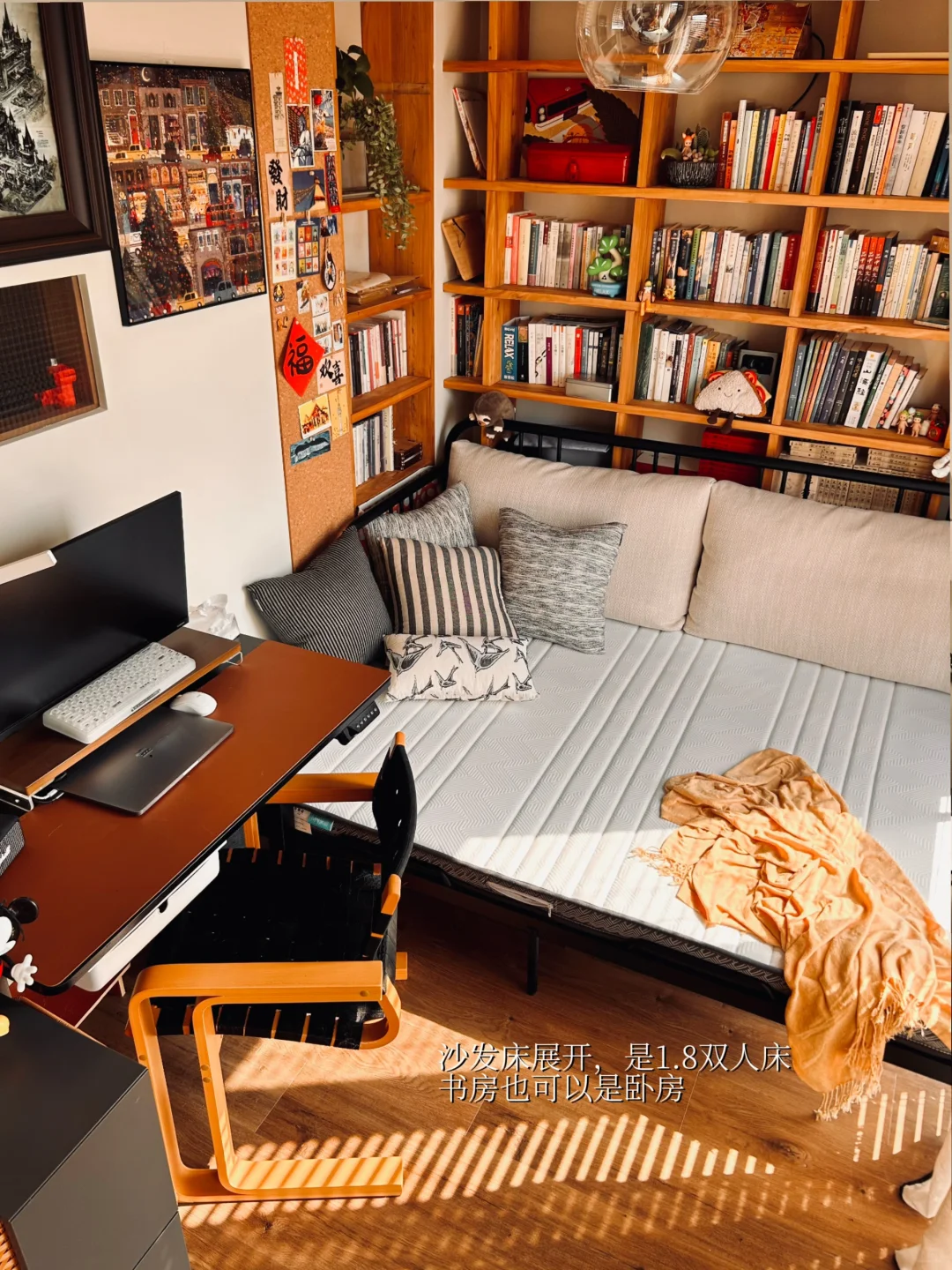 🛌沙发床展开是一个1.8的双人床,书房也可以是一个次卧,虽然现在的使用场景并不多,但给了这个小房子更多的可能性。
