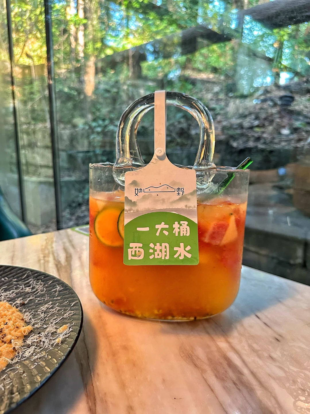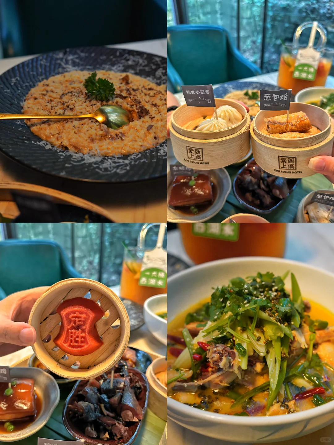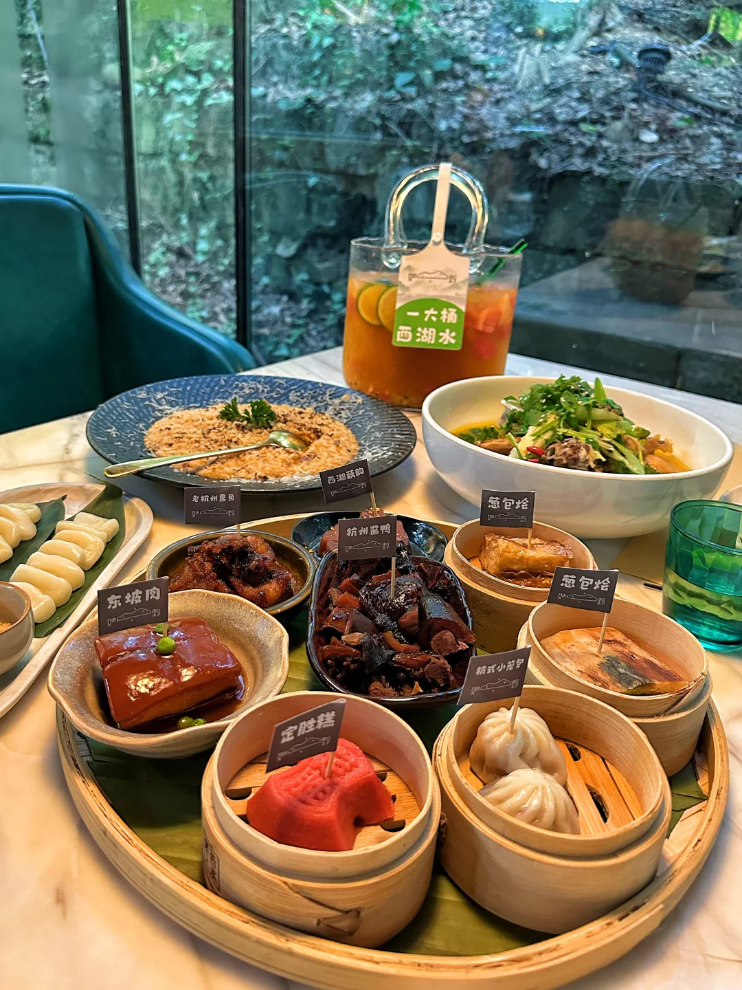 🥗这里的菜品也都很有特色!强烈推荐西湖故事簸箕宴、如野椒麻鸡、牛肝菌焗饭和一大桶西湖水🍹,我真的太爱了!🥰
