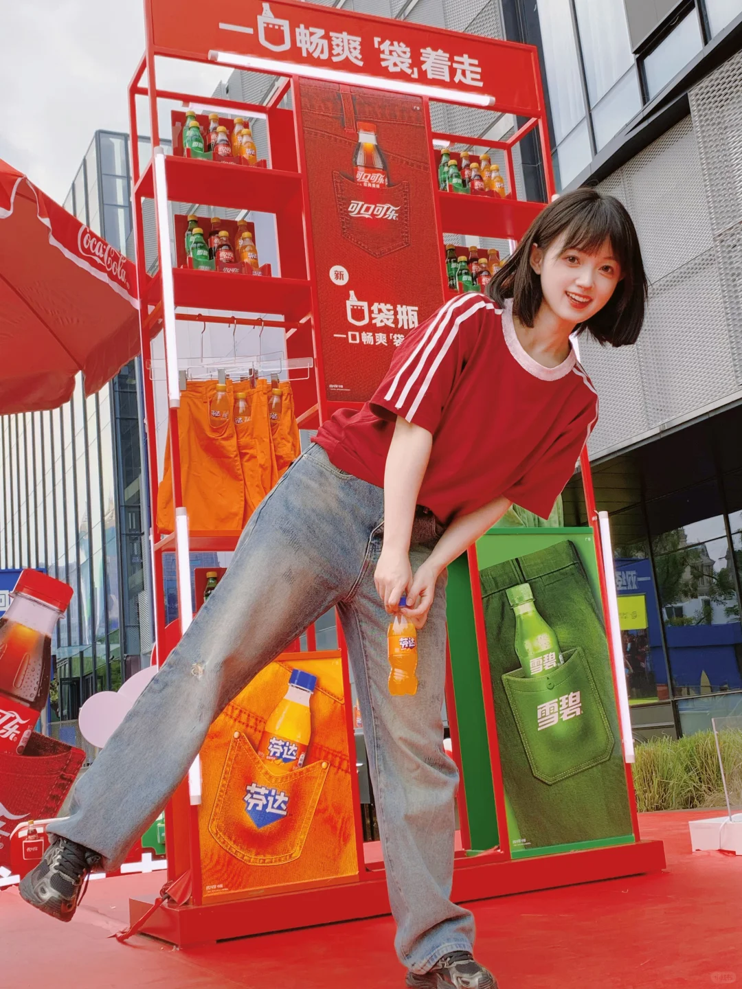 🚏口袋瓶趣味打卡区太chill了!各种打卡点都是口袋元素,上衣口袋里的可口可乐、裤兜里的芬达让人满眼都是惊喜!巨型背心一下子就把我吸引住了hh,在拿捏年轻人这块,果然还得是可口可乐!