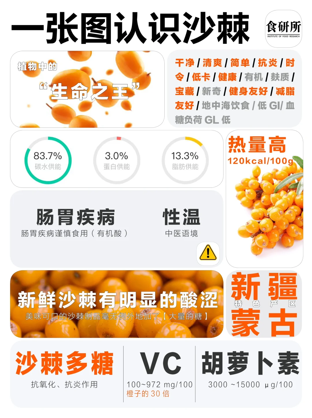 [冲浪板R]新鲜沙棘吃起来会有明显的【酸涩味】,这是因为沙棘中含有丰富的【有机酸】
