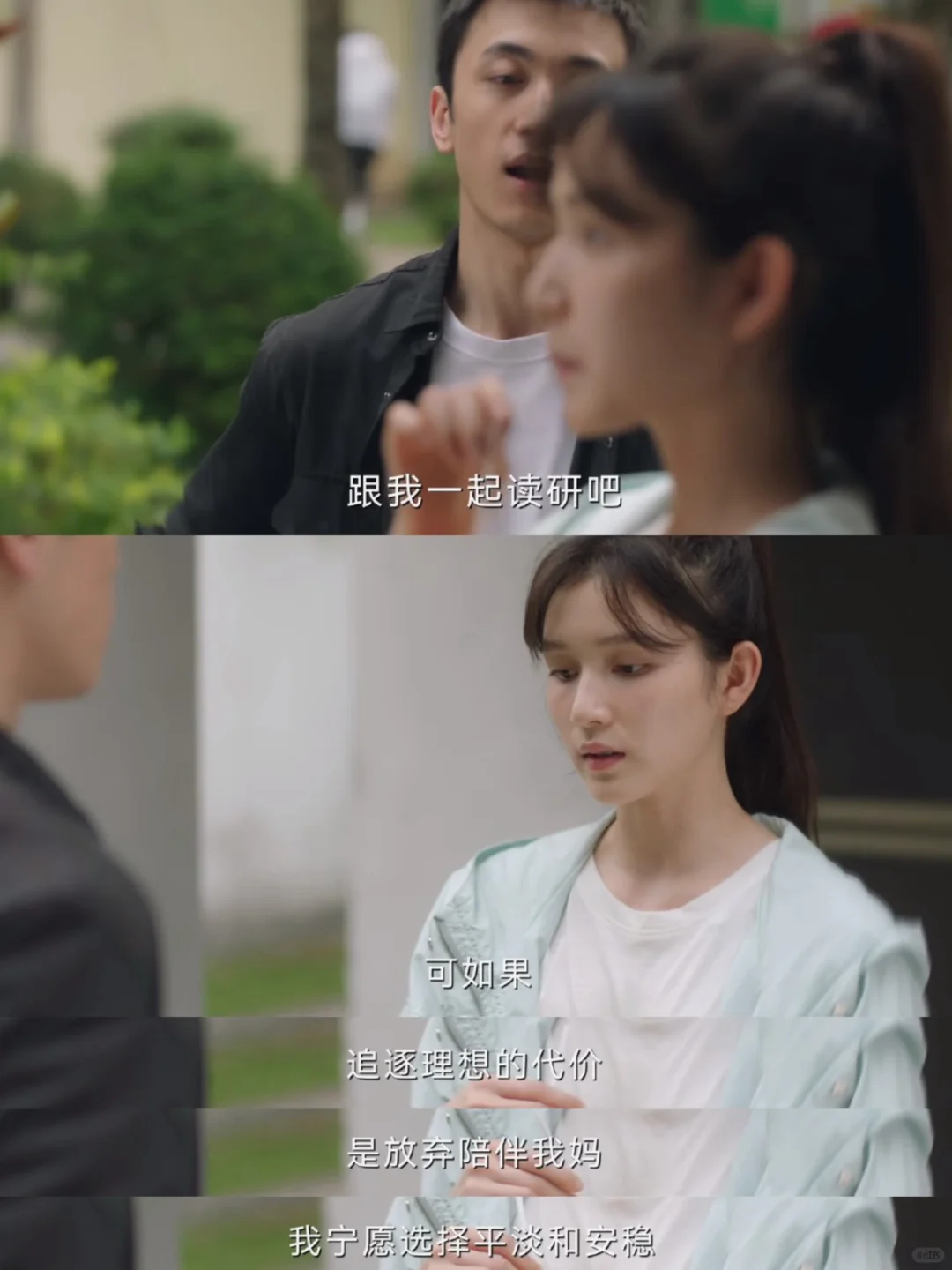 其实当初两人分手只是理念不同,雷旭让子瑜考研追逐梦想,子瑜却选择陪伴妈妈选择平淡和安稳。