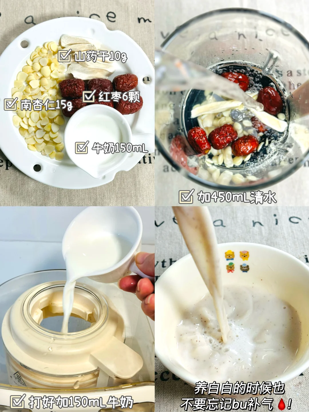 5️⃣南杏仁➕山药干➕红枣➕牛奶