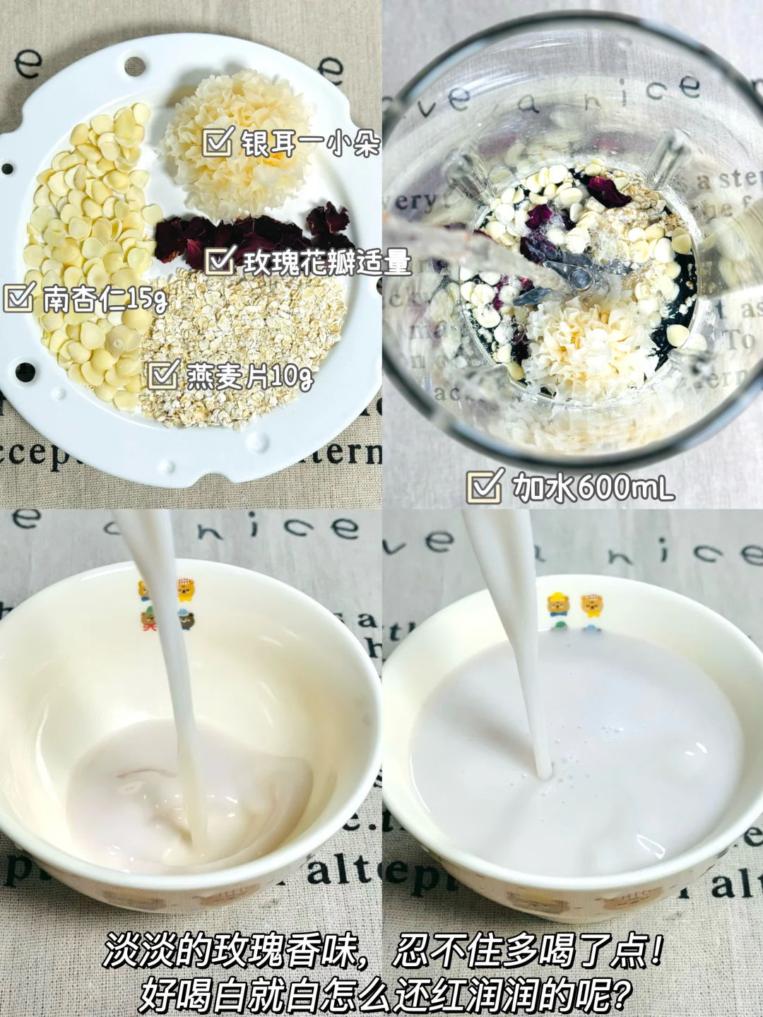 2️⃣南杏仁➕银耳➕玫瑰花➕燕麦片