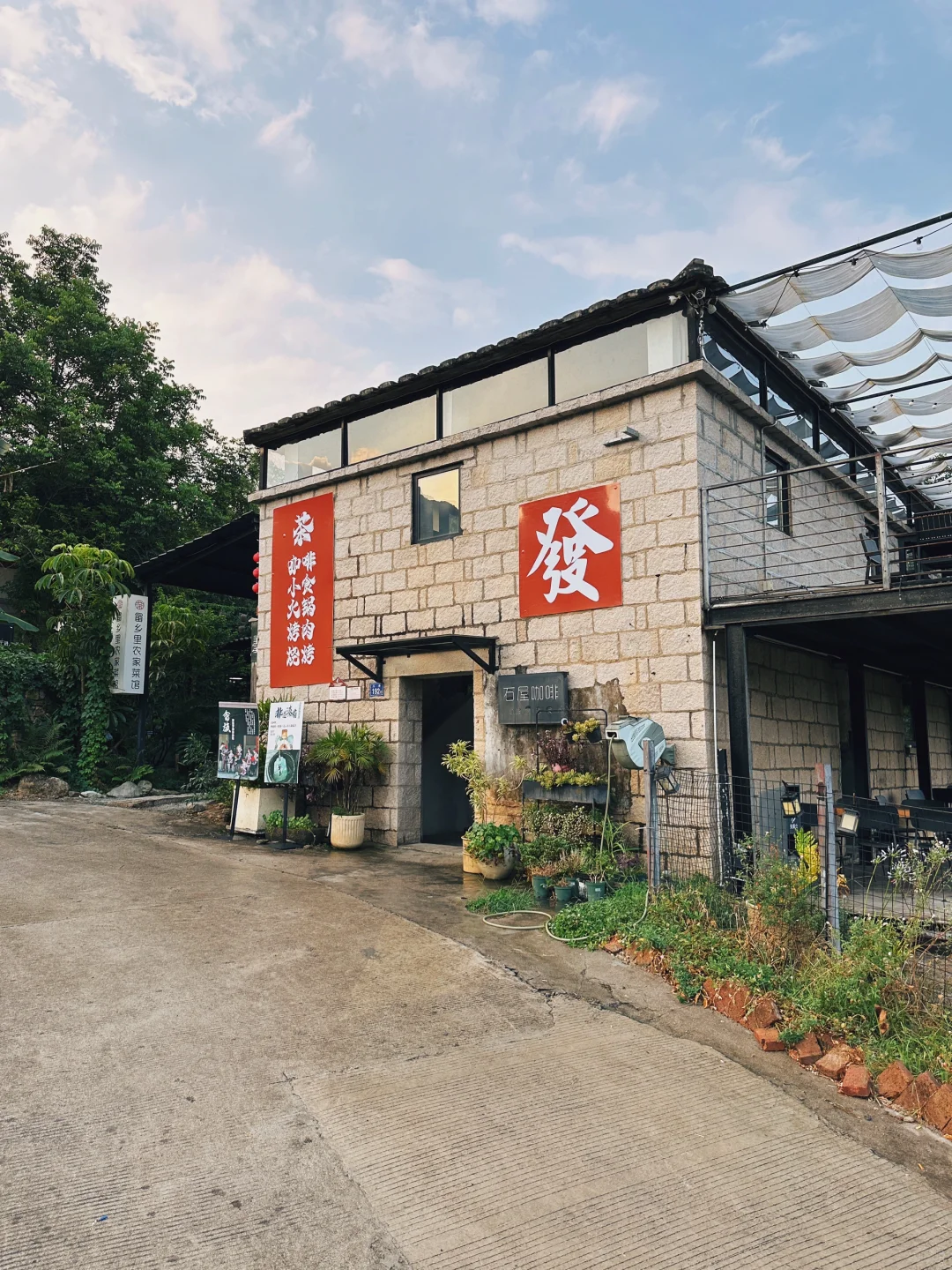 民宿的用餐区在民宿外不远处的石墨咖啡,这里也是民宿的前台。晚上这里还有放电影。