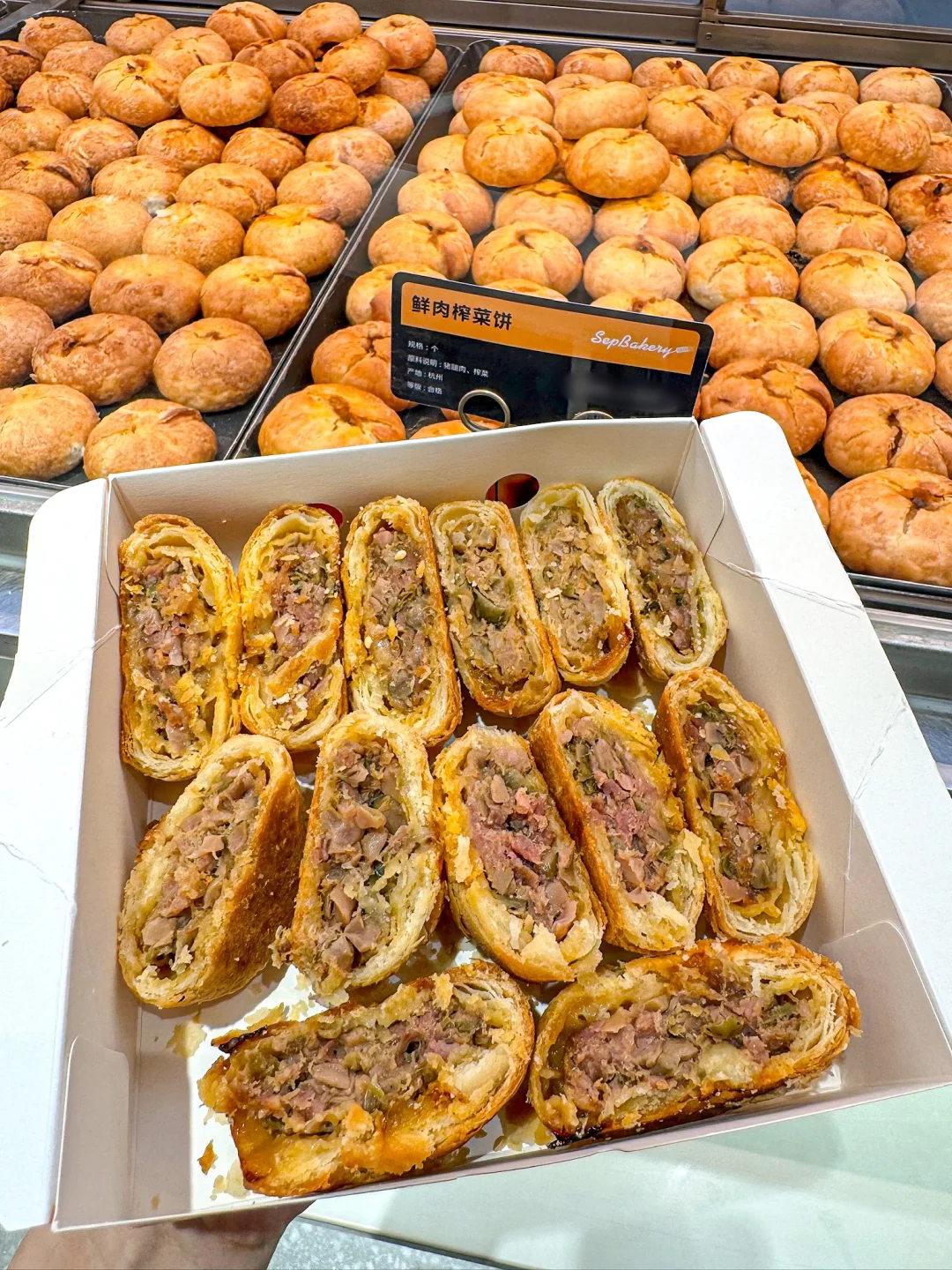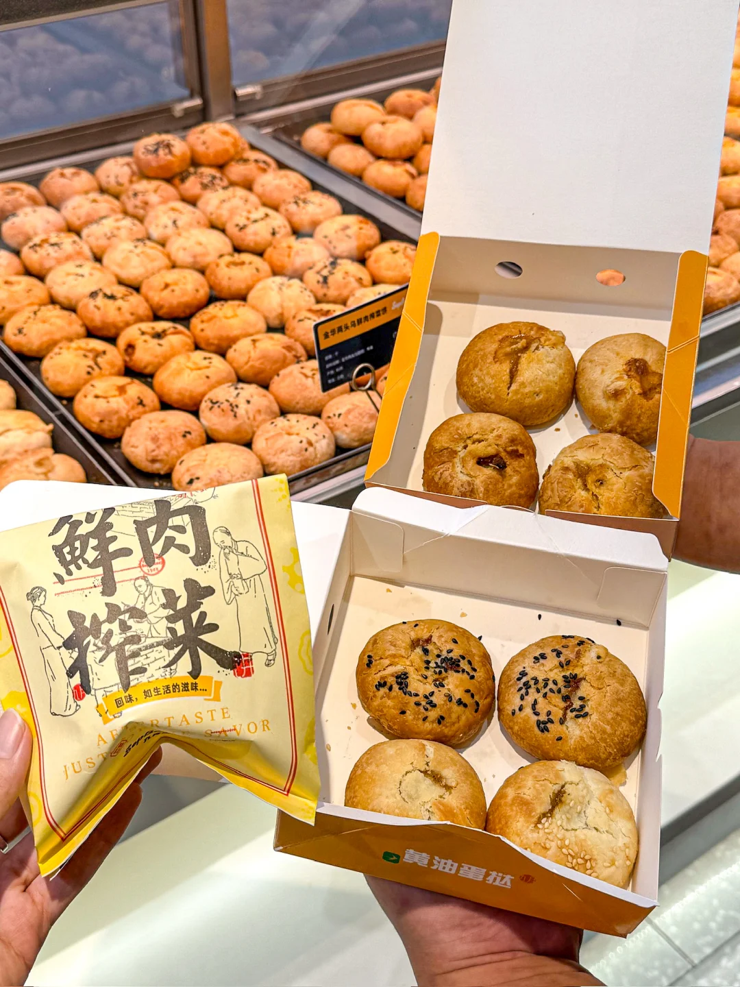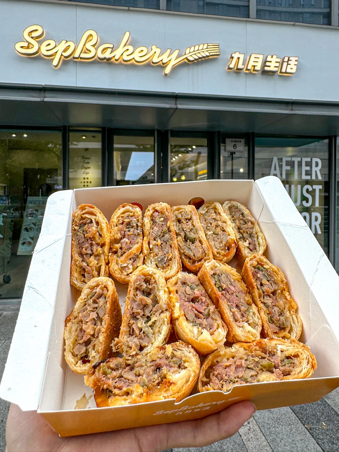 你怎么知道我又来杭州吃鲜肉月饼了!! 来杭十次有九次都是为了这家【九月生活】 一口气买了三种口味,个个都值得! · 🥮鲜肉榨菜月饼 这家店经典款,人手一袋的程度 饼皮酥到一碰就掉,一口掉渣! 新鲜猪腿肉+杭州本地榨菜 每一口都能吃到爆汁的馅料 🥮金华两头乌鲜肉榨菜月饼 选用金华两头乌鲜肉做馅 谁懂啊!肉质超Q弹,肥瘦相间 还能吃到扎实的榨菜颗粒 小小一个月饼,居然包含这么多料~ 🥮鲜肉笋丁月饼 “三分肥,七分瘦”的新鲜猪腿肉 加上鲜嫩脆爽的笋丁,鲜掉眉毛! 加热一下更好吃,一口就biu汁 这口咸中带鲜的中秋味道,对味了! · 每次离开杭州都要大包小包打包带走 所以!九月生活什么时候来宁波开店!