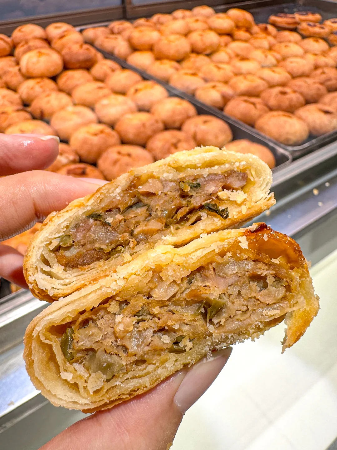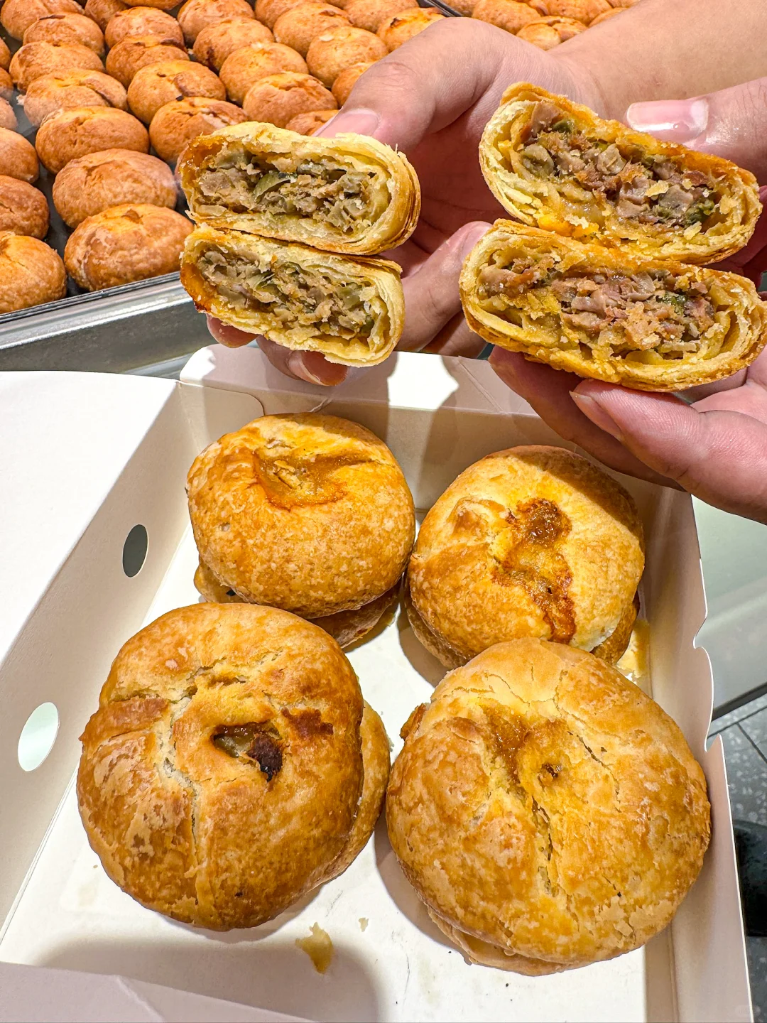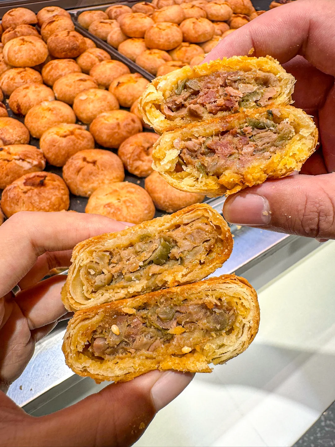 你怎么知道我又来杭州吃鲜肉月饼了!! 来杭十次有九次都是为了这家【九月生活】 一口气买了三种口味,个个都值得! · 🥮鲜肉榨菜月饼 这家店经典款,人手一袋的程度 饼皮酥到一碰就掉,一口掉渣! 新鲜猪腿肉+杭州本地榨菜 每一口都能吃到爆汁的馅料 🥮金华两头乌鲜肉榨菜月饼 选用金华两头乌鲜肉做馅 谁懂啊!肉质超Q弹,肥瘦相间 还能吃到扎实的榨菜颗粒 小小一个月饼,居然包含这么多料~ 🥮鲜肉笋丁月饼 “三分肥,七分瘦”的新鲜猪腿肉 加上鲜嫩脆爽的笋丁,鲜掉眉毛! 加热一下更好吃,一口就biu汁 这口咸中带鲜的中秋味道,对味了! · 每次离开杭州都要大包小包打包带走 所以!九月生活什么时候来宁波开店!